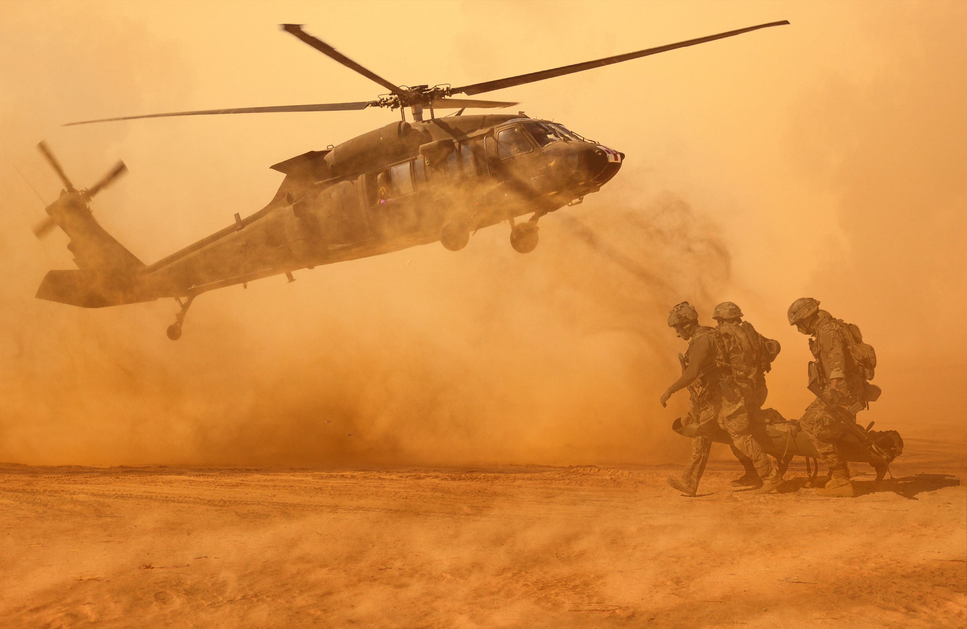Creado con imágenes de roibu - "Detail shot with american flag on soldier uniform, giving the honor salute during military ceremony" • ai tekno koncept - "Rusted oil barrel with usa flag and economic graph, energy and economy concept " • Meysam Azarneshin - "Army Soldiers carrying patient to the aircraft in the battle field" • Meysam Azarneshin - "Two homeless little girl walking in destroyed city, soldiers and helicopters and tanks are still attacking the city" • Akanei - "Silhouette of American flag and soldiers against sunset, for patriotic promotion and military - related designs" • AspctStyle - "Back view of two children in dirty clothes sitting in the middle of destroyed city after the war" • Meysam Azarneshin - "Military forces & helicopters between smoke and dust at battlefield." • Glebstock - "Child looking on nuclear war episode" • .shock - "soldier with full combat gear in night mission"