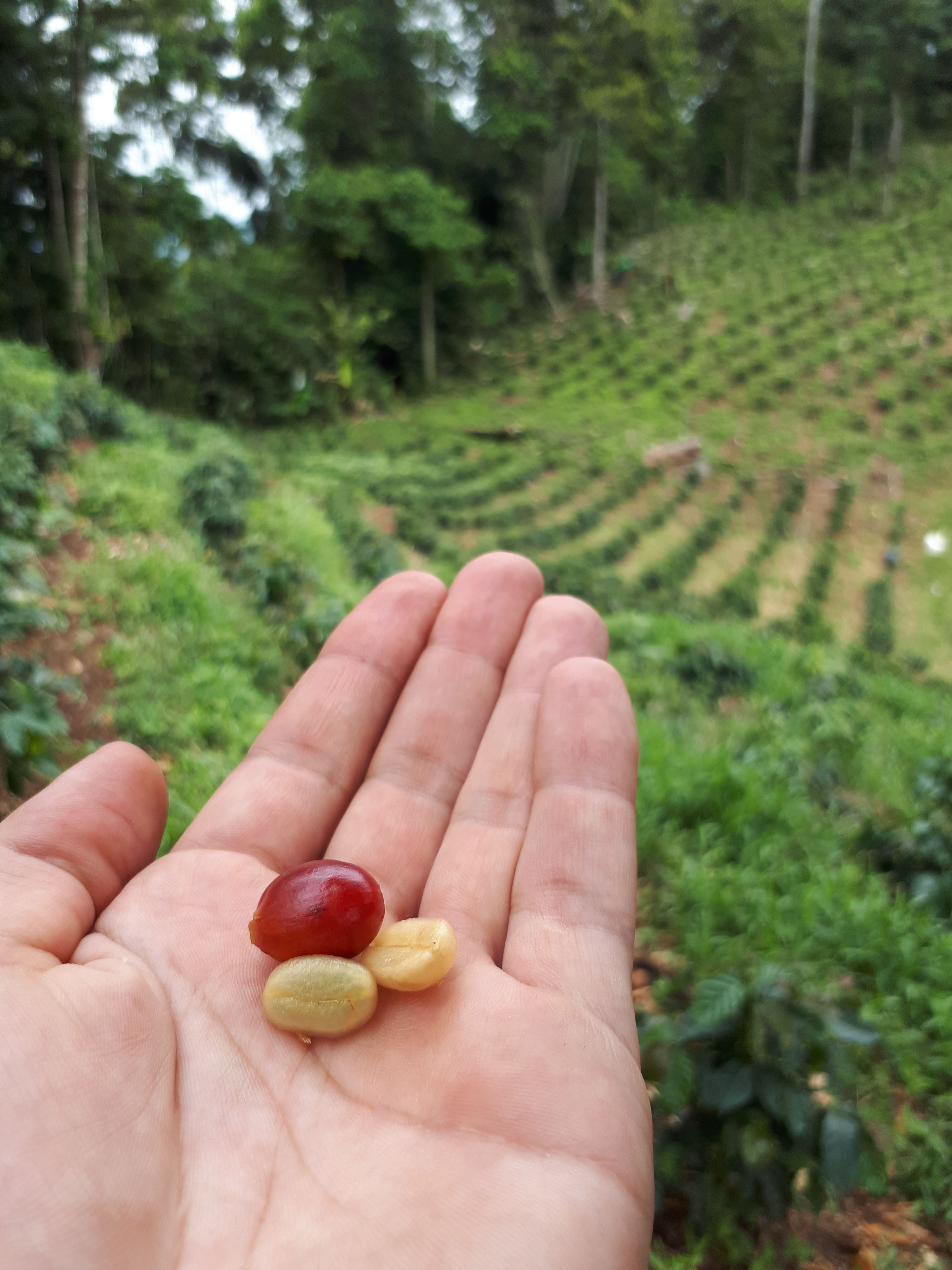Tenemos diferentes cultivos en la finca. Producimos nuestro propio café y tenemos también una peque��a plantación de pitahaya.