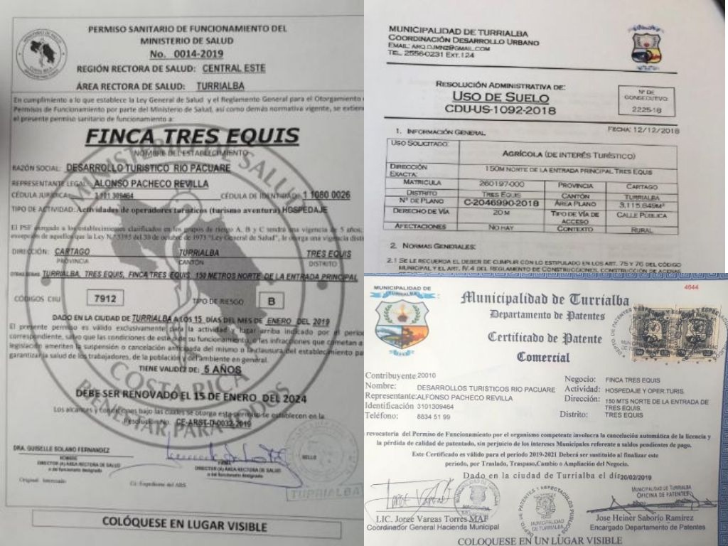 Se cuenta con los permisos de la Municipalidad y el Ministerio de Salud para brindar los servicios de hospedaje, tours y se abren las puertas para construir y desarrollar proyectos de índole turístico sin ningún inconveniente en el futuro.