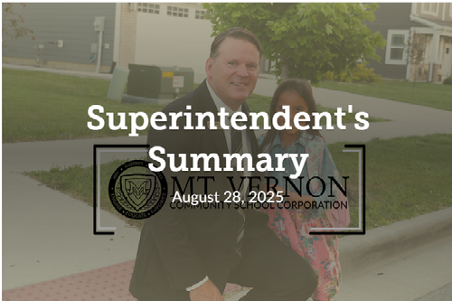 As we celebrate this strong beginning, I want to thank each of you for your support and partnership. It is through our shared commitment that Mt. Vernon continues to be a place where students can learn, grow, and achieve at the highest levels.
