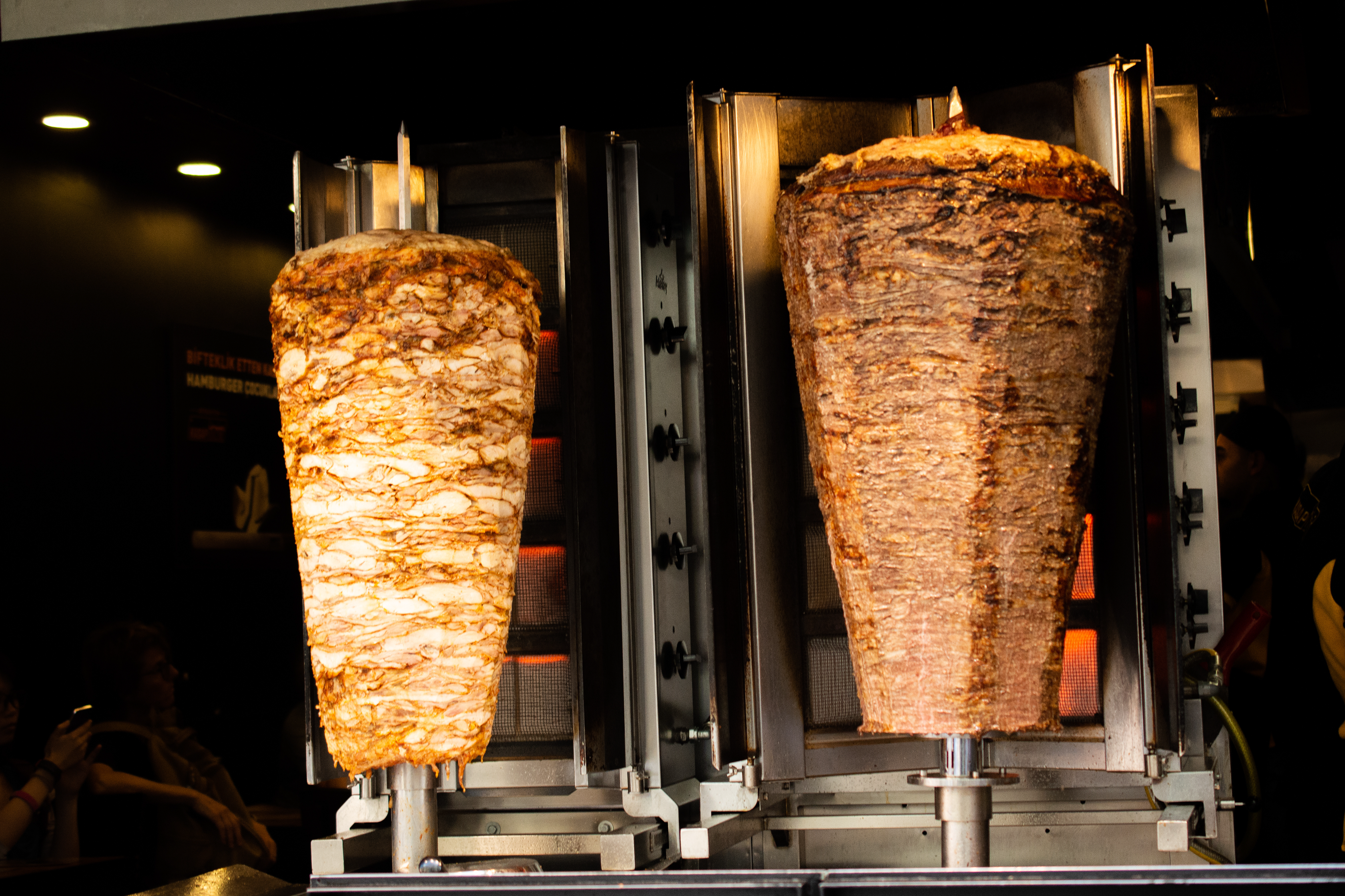 Erstellt mit Bildern von Dar1930 - "Crunchy pita with grilled gyros meat.,Various vegetables and garlic sauce" • Koca - "Traditional Turkish Doner Kebab kebab on skewer.,Turkish cuisine street food"