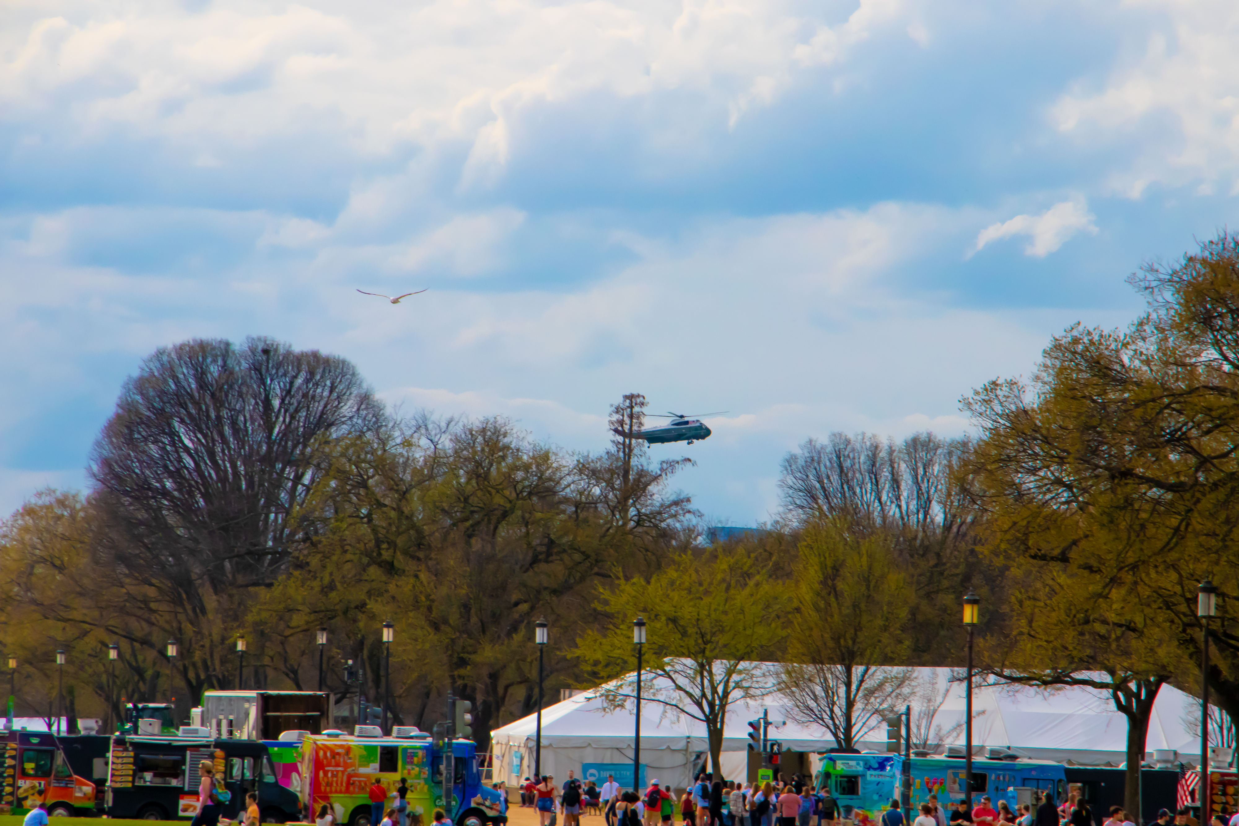 That's when I knew something cool was just about to happen. I was looking away from the Washington Monument when out of the corner of my eye I saw two large helicopters swoop in out of nowhere and one banking hard in the direction of the White House. That's when I snapped into action was able to get this shot.