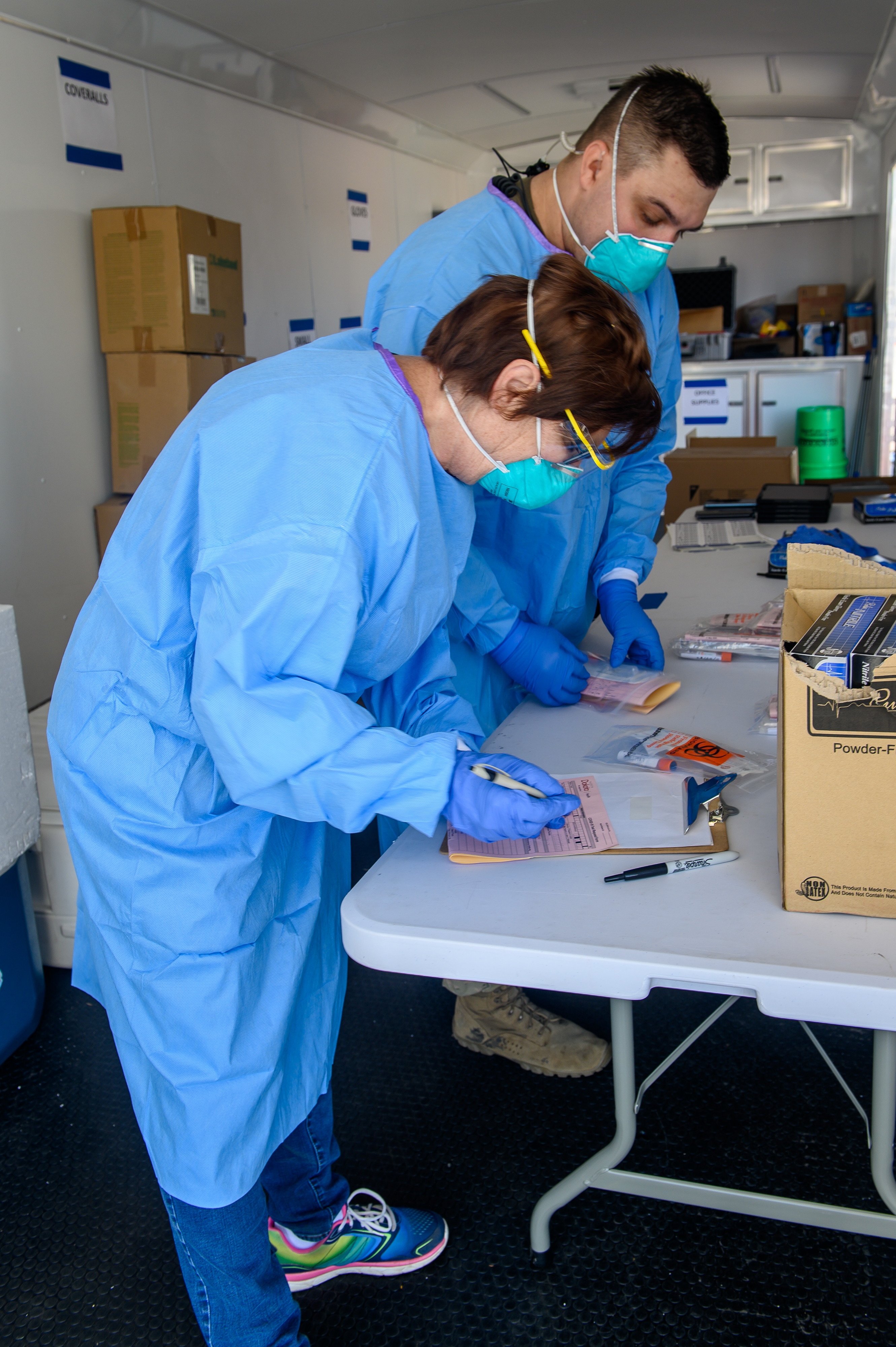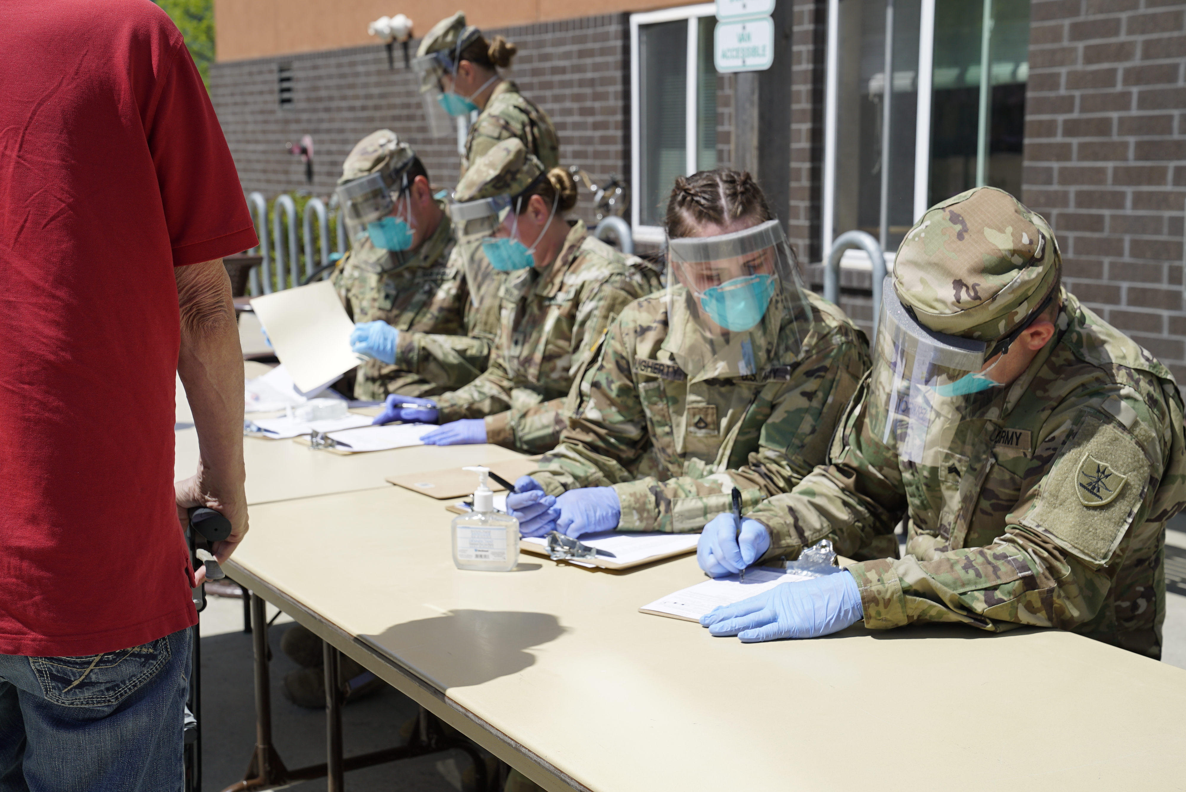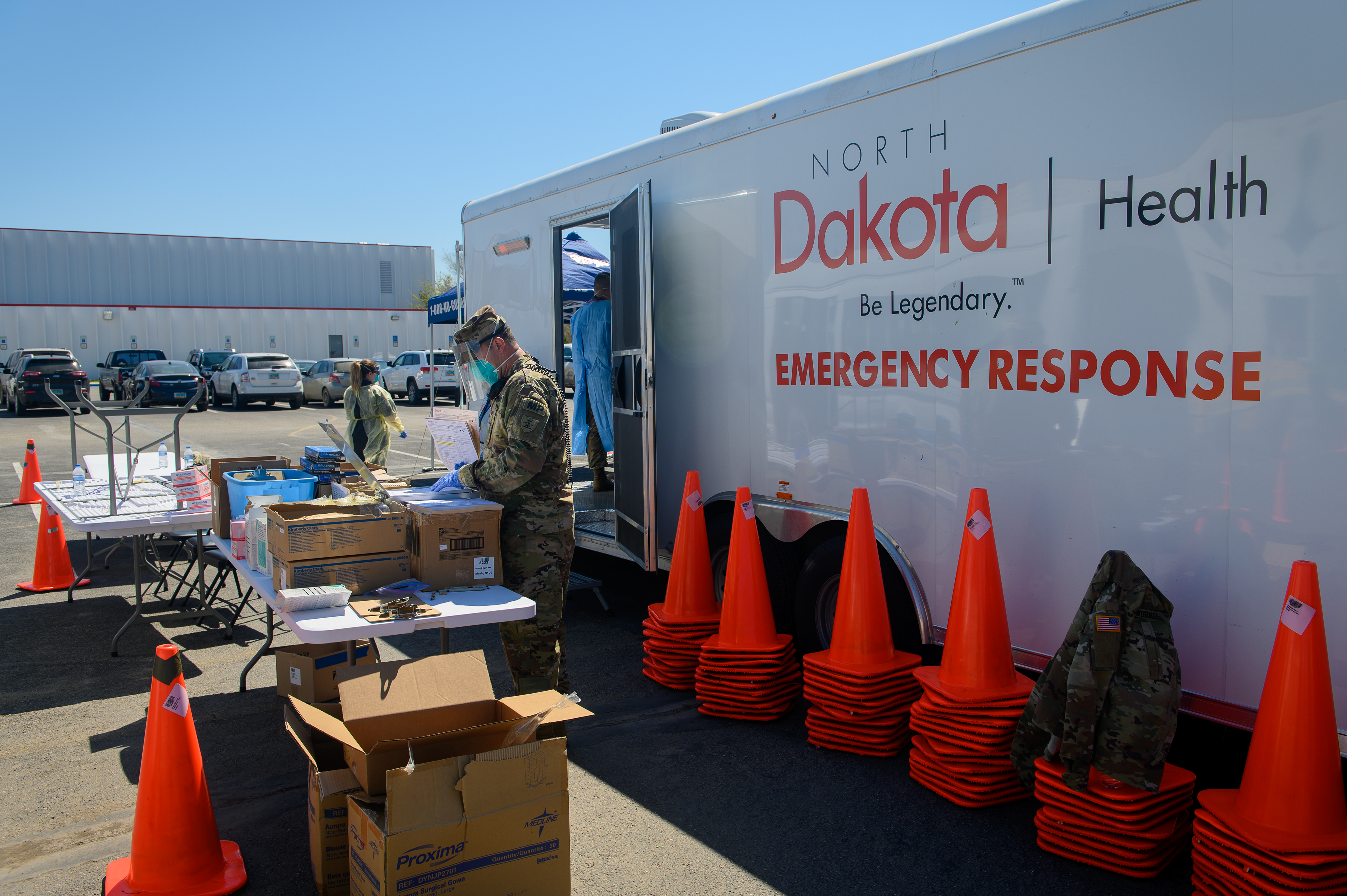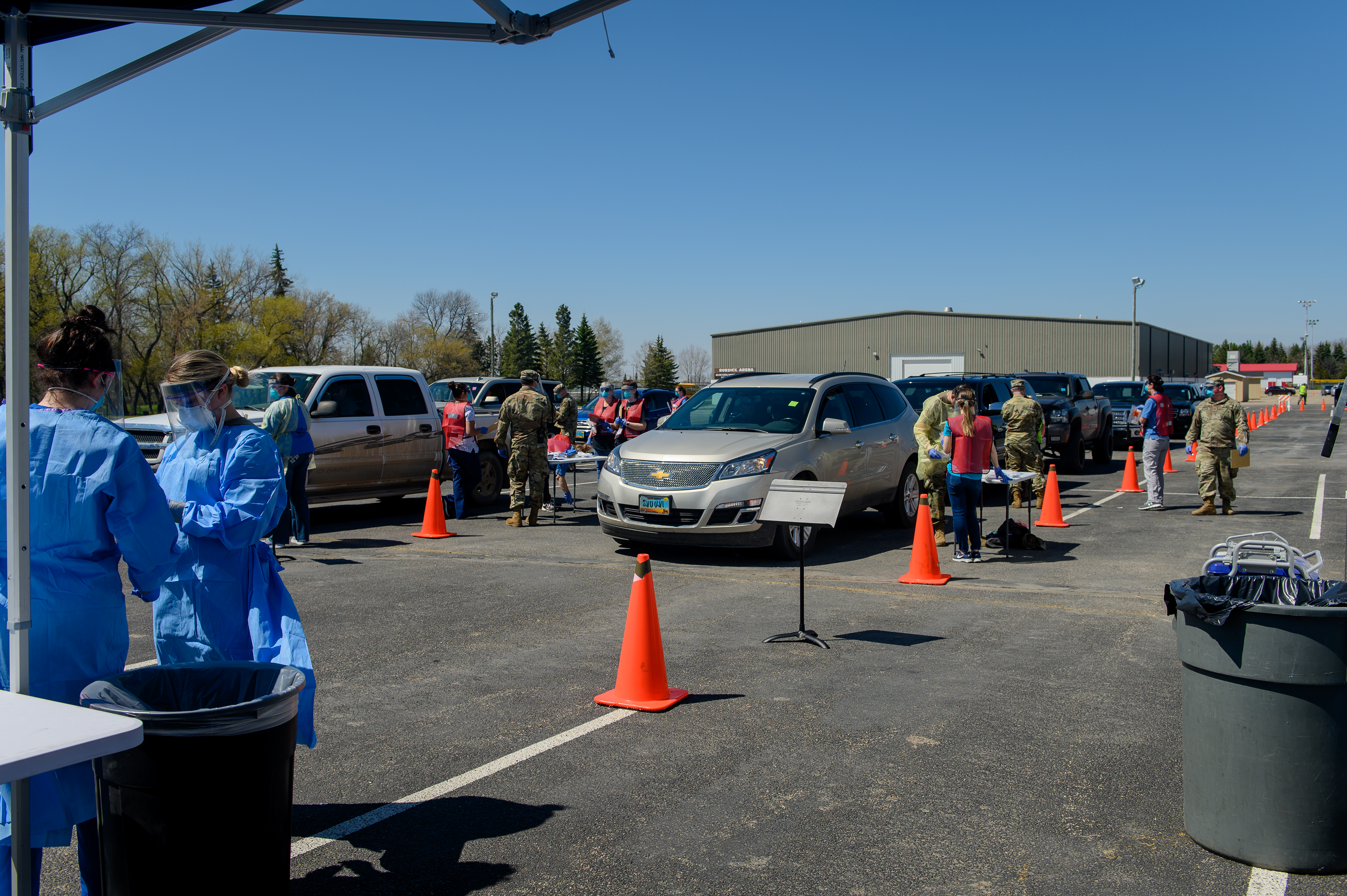 The N.D. National Guard help support mobile COVID-19 testing site in Devils Lake on May 17. The Guard partnered with the N.D. Department of Health and the Lake Region District Health Unit.