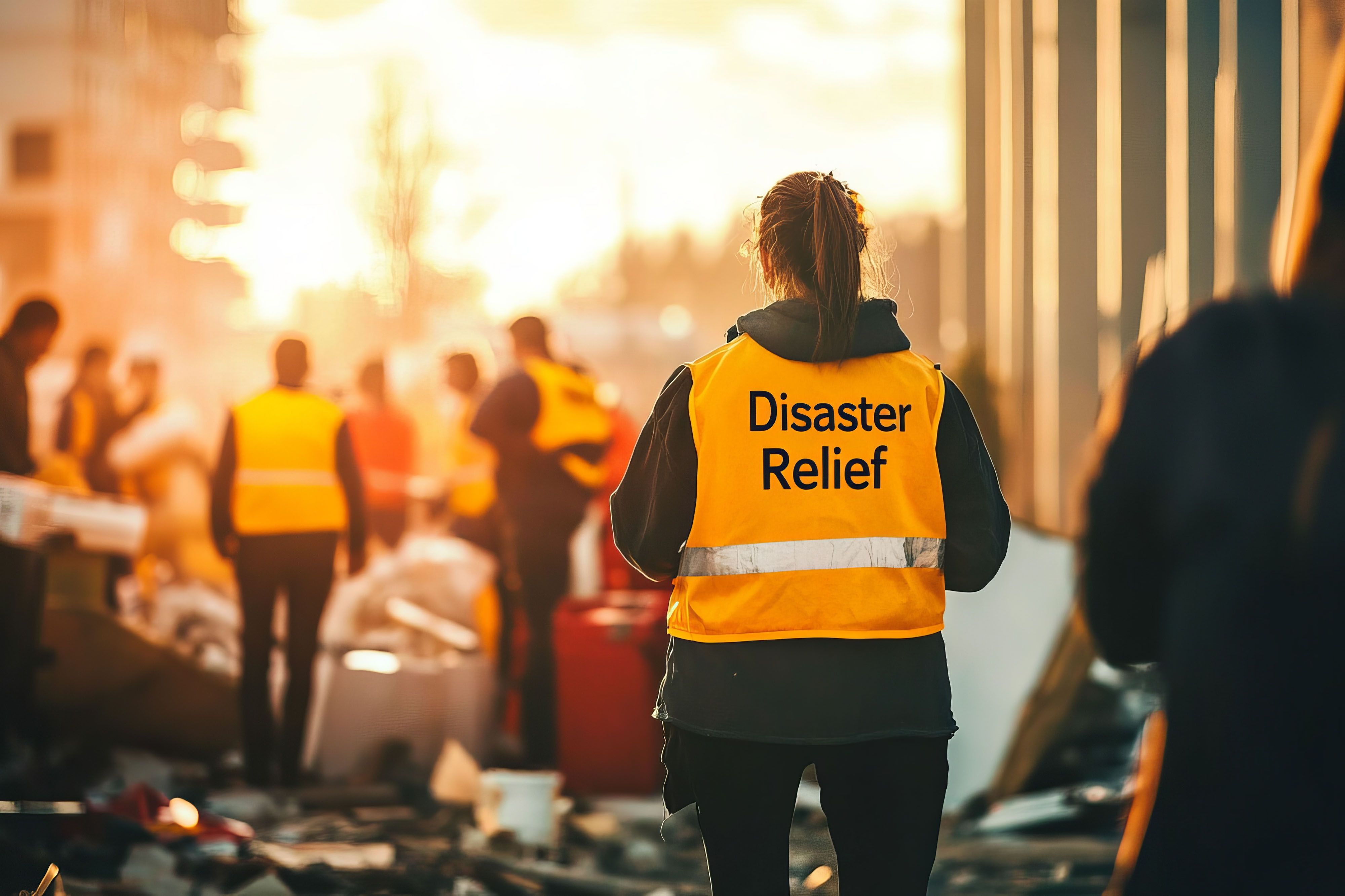 Created with images by photobuay - "businesswoman writing plan classification by time" • Sadia - "Disaster Relief in Action – Volunteers distributing aid during an evacuation, wearing "Disaster Relief" vests against a backdrop of destruction and debris." • Creative Design - "lightning striking a fire and water" • utaem2022 - "Destroyed building collapsing after natural disaster under dramatic sky" • Oleg - "Aerial perspective of hurricane damaged home in florida impact of natural disasters on communities" • dizain - "Emergency word cloud collage, health concept background" • Leonard Zhukovsky - "Destroyed beach house in the aftermath of Hurricane Sandy"