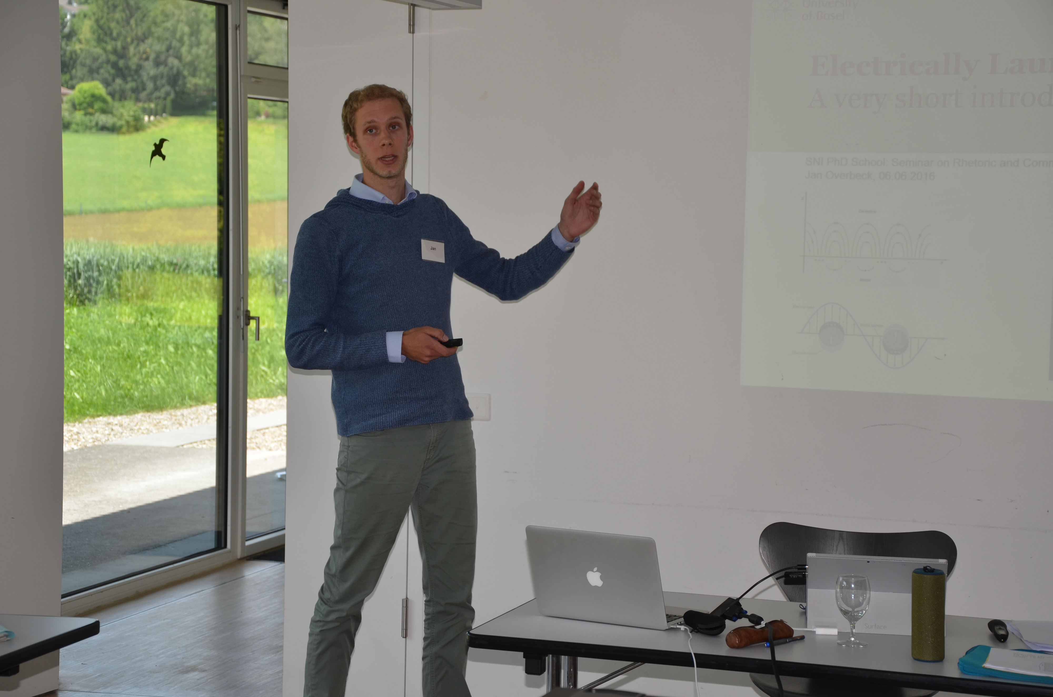 Seminar participants are asked to give a 5 minute max. scientific presentation about their current research project. The speech will be videotaped for immediate feedback by the rhetoric coach, the other participants and the seminar instructor.