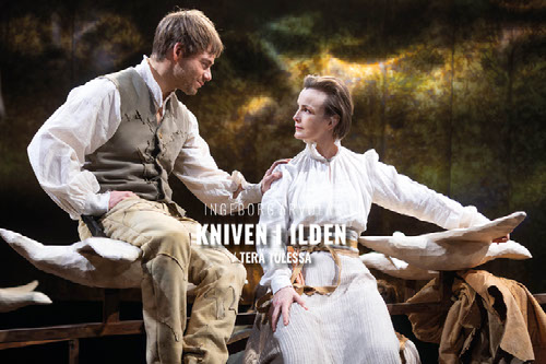 Ingeborg Arvola nostaa kans framile kväänin kulttuuria Brita Kaisan intohimoisen muisteluksen kautta. - Se, joka oon niin fiiniä tässä muisteluksessa oon, ette se ei ole läksyttävä. Se ei väitä, ette kväänile asiat olthiin sillä laila eli tällä laila. Ingeborg oon tehny hyvän taustatyön, niin ette hän tiettää kyllä mistä hän kirjoittaa, mutta hän ei freistaa koskhaan sanoa, ette se oli sillä laila kaikile, sannoo Mosli. «Kniven i ilden» oon myyty yli 60 000 kappaletta. Se meinaa, ette monet jokka näkkee teatteriesityksen tunnistavat muisteluksen hyvin jo ennesthään. Mitä het voivat oottaa ko astuvat sisäle teatterisalhiin? - Romaani oon jo ittessä niin vahva, kirjalisessa muossa, ko taas esitykselä häättyy olla oma otet. Met kehitämmä modernia teatteriversuunia, teatterileikkiä. Kirjassa oon yli 80 karakteeria, niin ette met hääymä jatkaat määrän karsimista. Samhaan aikhaan meän oon piettävä muisteluksen ytimestä kiini, niin se oon ollu pitkä prosessi. Ko mie olen ollu epävarma jostaki, olen kysyny Ingeborgilta. Hän oon ollu uskomattoman avokätinen. Olen iloinen hänen antamasta luottamuksesta ja tuesta, sannoo Mosli, joka oon itte laatinu käsikirjoituksen. Luonto oon tärkeä Arvolan kirjassa, ja sen uuelheenluomisessa seenile oon Moslin häätyny olla kreatiivinen. Päämateriaalina kaikissa kostyymissä oon esimerkiksi poronsarvi, nahka ja orgaaniset materiaalit. Ja jos aistit tarkkhaan, saatat huomata tervan ja kuivakalan hajun salissa. Entä sitten kirjan höyryävän eroottiset kuvvaukset. Miten net oon ratkottu? - Siitä ei tule kirjan jäljitelmää. Olema löytäny täysin uusia konstia kuvata läheisyyttä, tuntheita ja himoa. Näyttämöpellajat ei tule olemhaan alasti seenilä, mutta se tullee tuntumhaan siltä ko het oltais alasti, sannoo Cecilie Mosli salaperäisesti. Kirjoittannu Trine Andersen