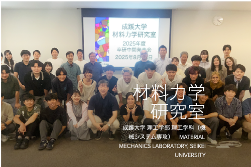 当時B4・鈴木彩絵さん、本多怜君、山本絢香さんが日本材料学会関東支部2019学生研究交流会(於・慶應義塾大学)において「A2024-T3アルミニウム合金の曲げにおける集合組織その場観察(鈴木さん)」、「AZ31合金板のレーザー照射条件の違いによる組織と硬さの変化(本多君・山本さん)」のタイトルでそれぞれ発表し、優秀講演賞を受賞しました。(2019年9月)