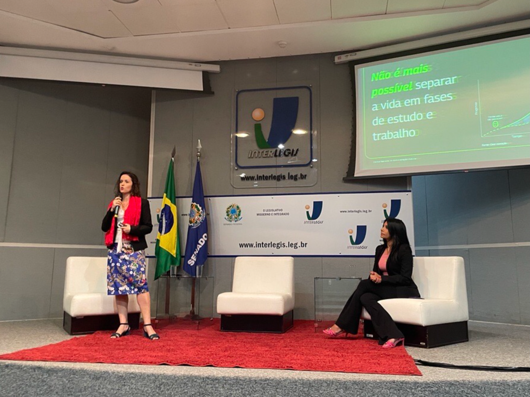 Betânia apontou uma aceleração contínua dos processos de trabalho que estão mudando a realidade do mundo corporativo. Segundo ela, não é mais possível dividir a vida entre período de formação e carreira profissional: