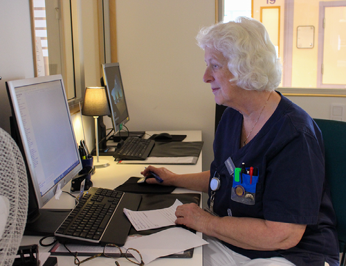 Treize heures pile, Margareta pousse la porte de la petite salle réservée aux infirmières du service orthopédie. Accolades, bises et mains sur l’épaule, toute l’équipe est visiblement heureuse de la retrouver. Elle ne travaille plus que cinq à six jours par mois, mais toujours avec le même sérieux. “Là, ça va être un peu long, prévient-elle, les équipes du matin vont me transmettre les instructions et les détails sur les patients”. Son visage se ferme, elle se concentre.