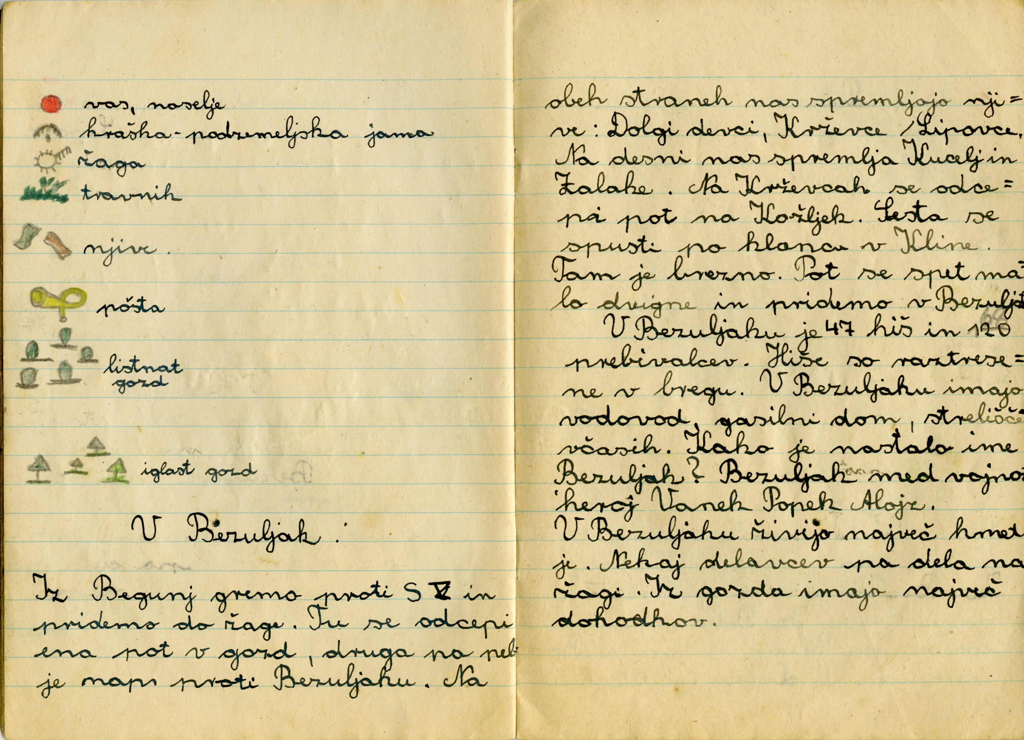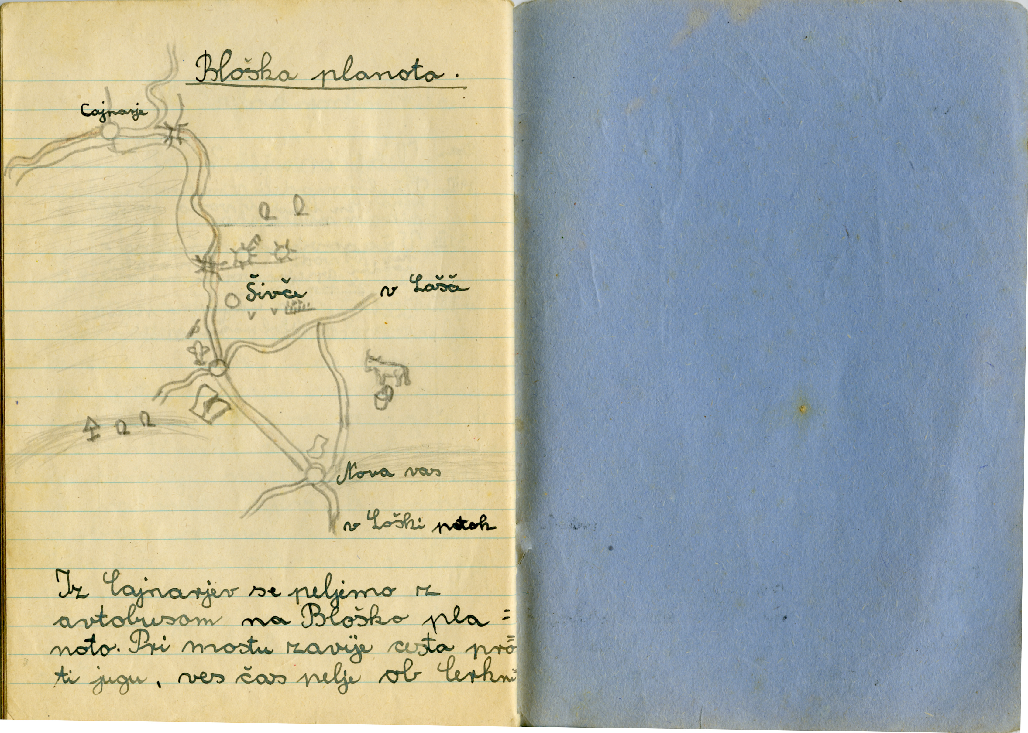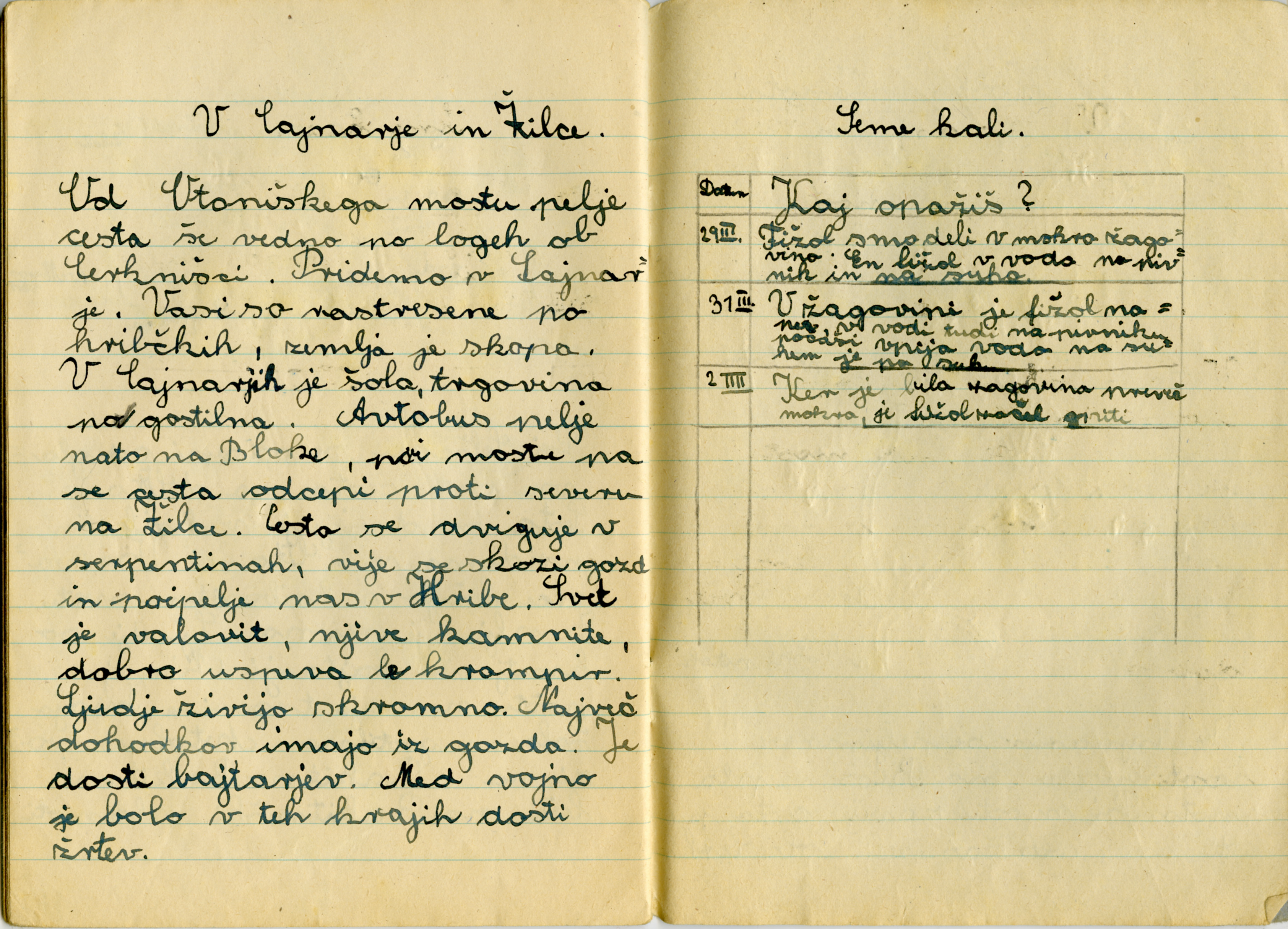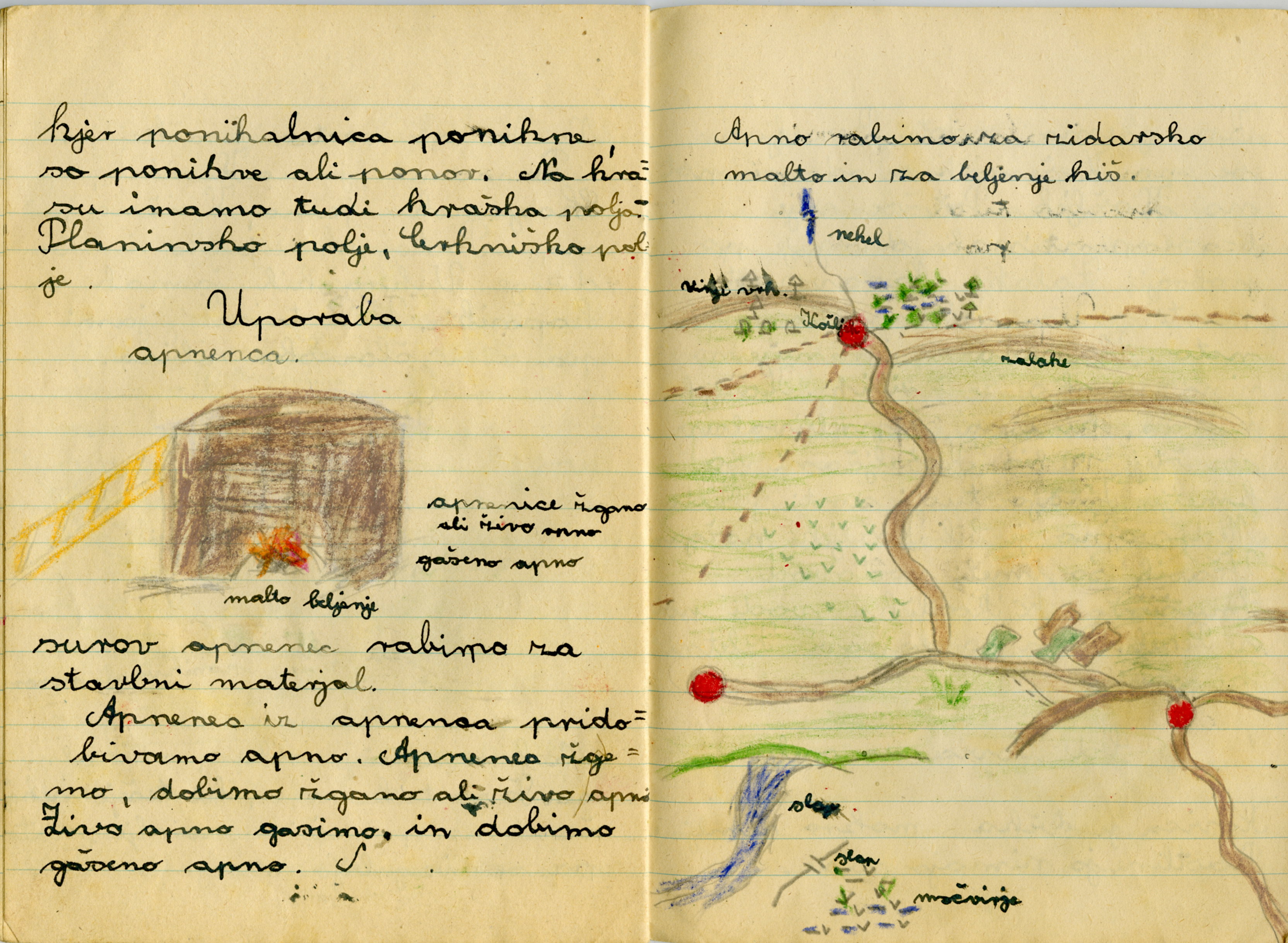 Zvezek je najbrž nastal pri predmetu "Spoznavanje narave in družbe", tako smo ga vsaj imenovali v šestdesetih letih, ko sem v osnovno šolo hodil sam. Moji zvezki so bili v nasprotju z Aničinimi polni pack, ki so nastale zaradi moje nepazljivosti pri pisanju s peresom, ki sem ga pomakal v črnilo.