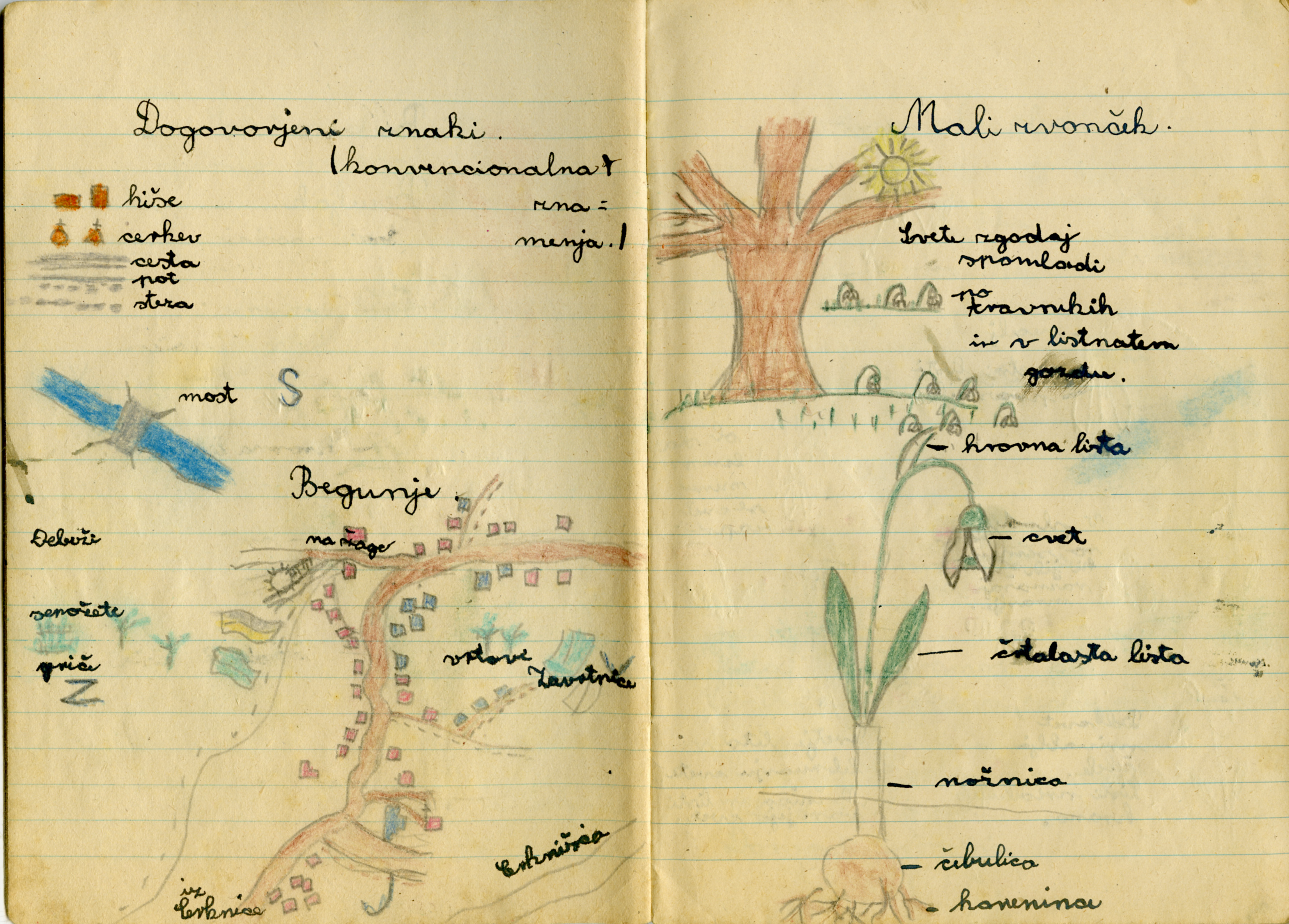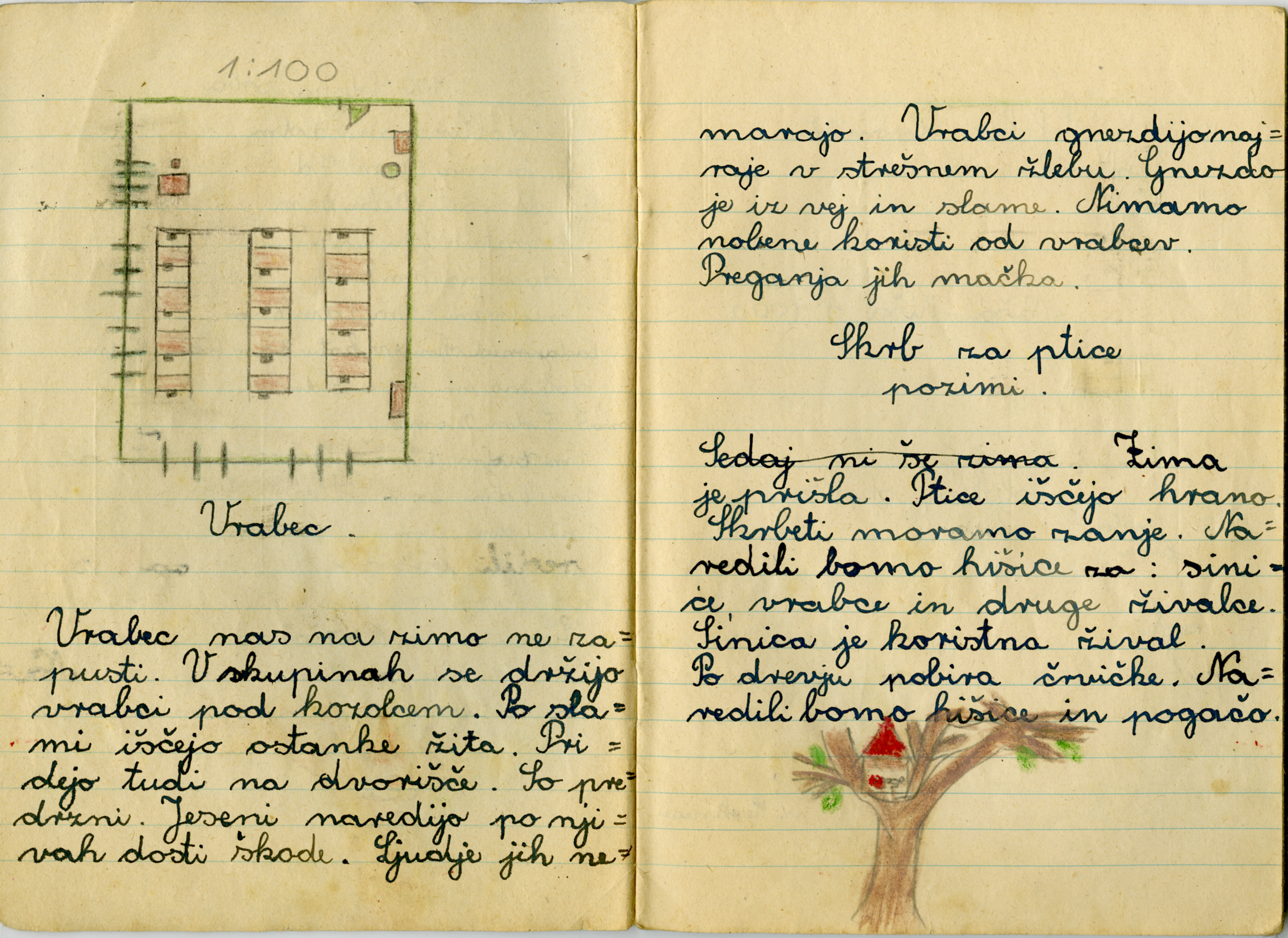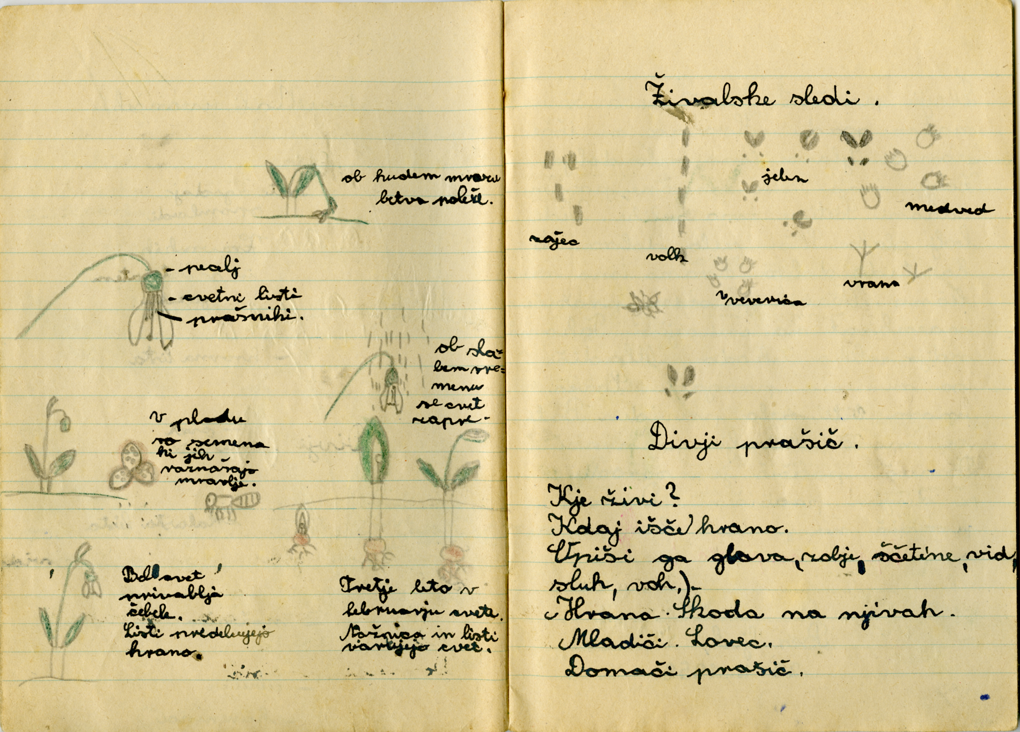 Iz zvezka je videti, kako se je Anica potrudila. Iz njene pisave in njenih risb sklepam, da je v šolo rada hodila.
