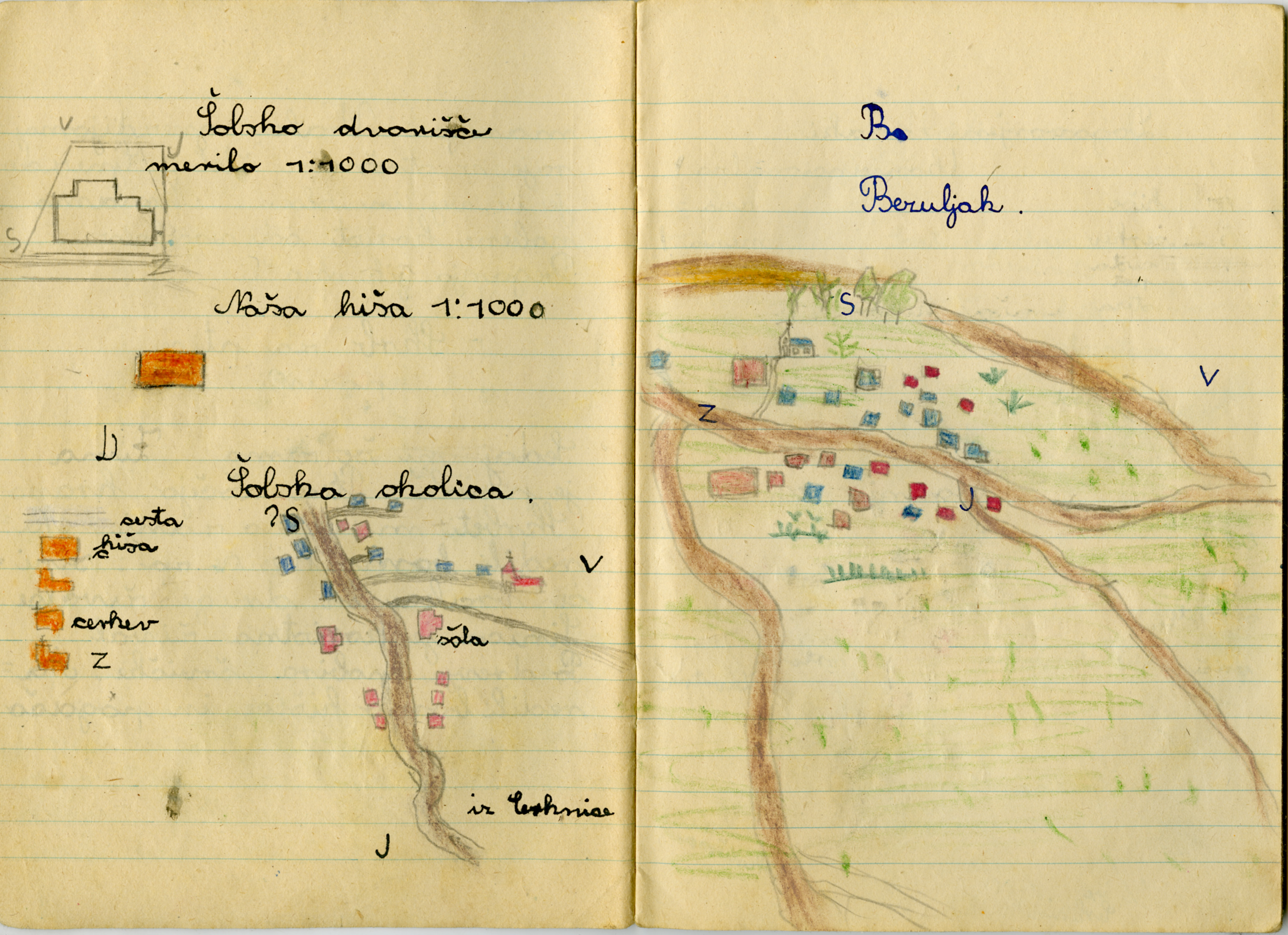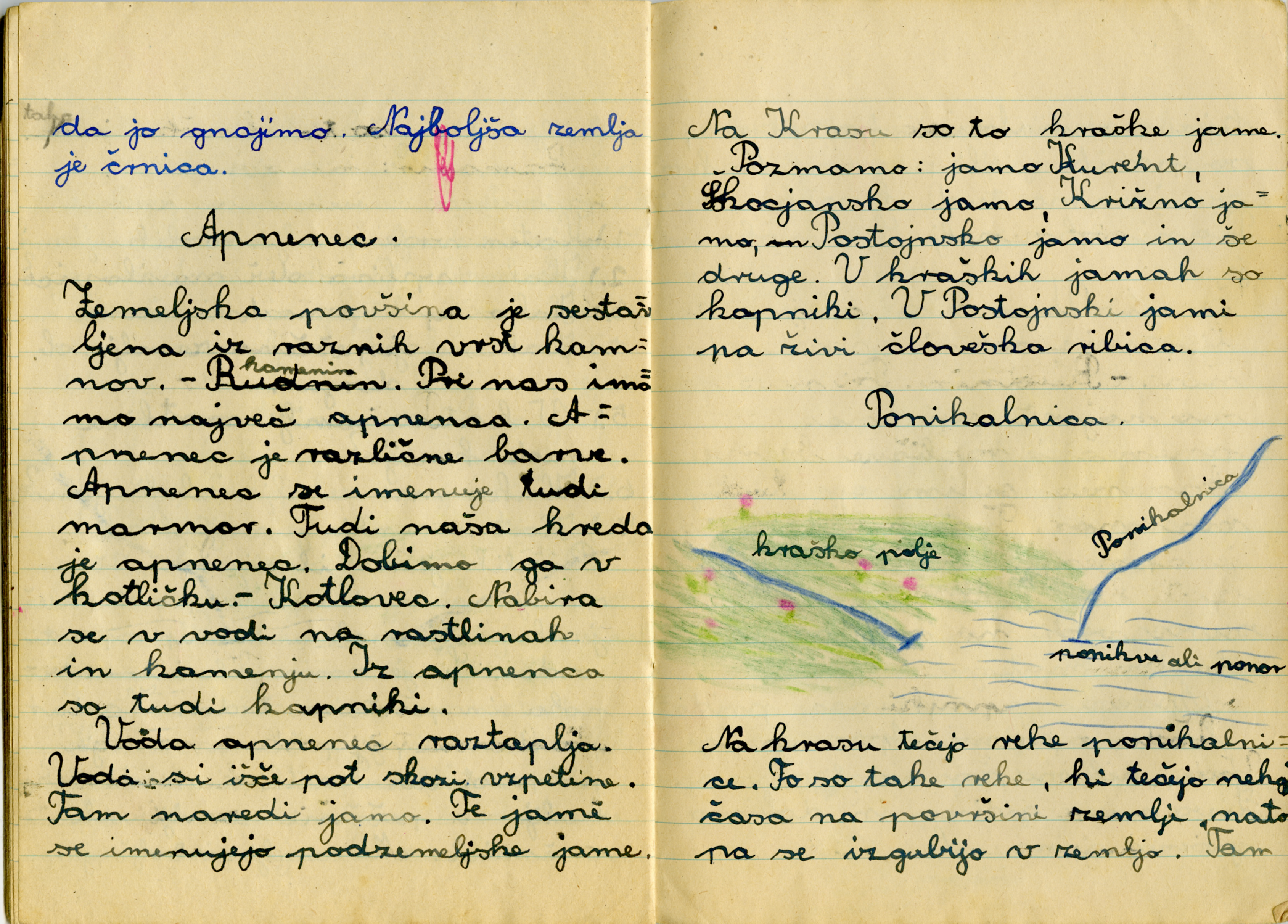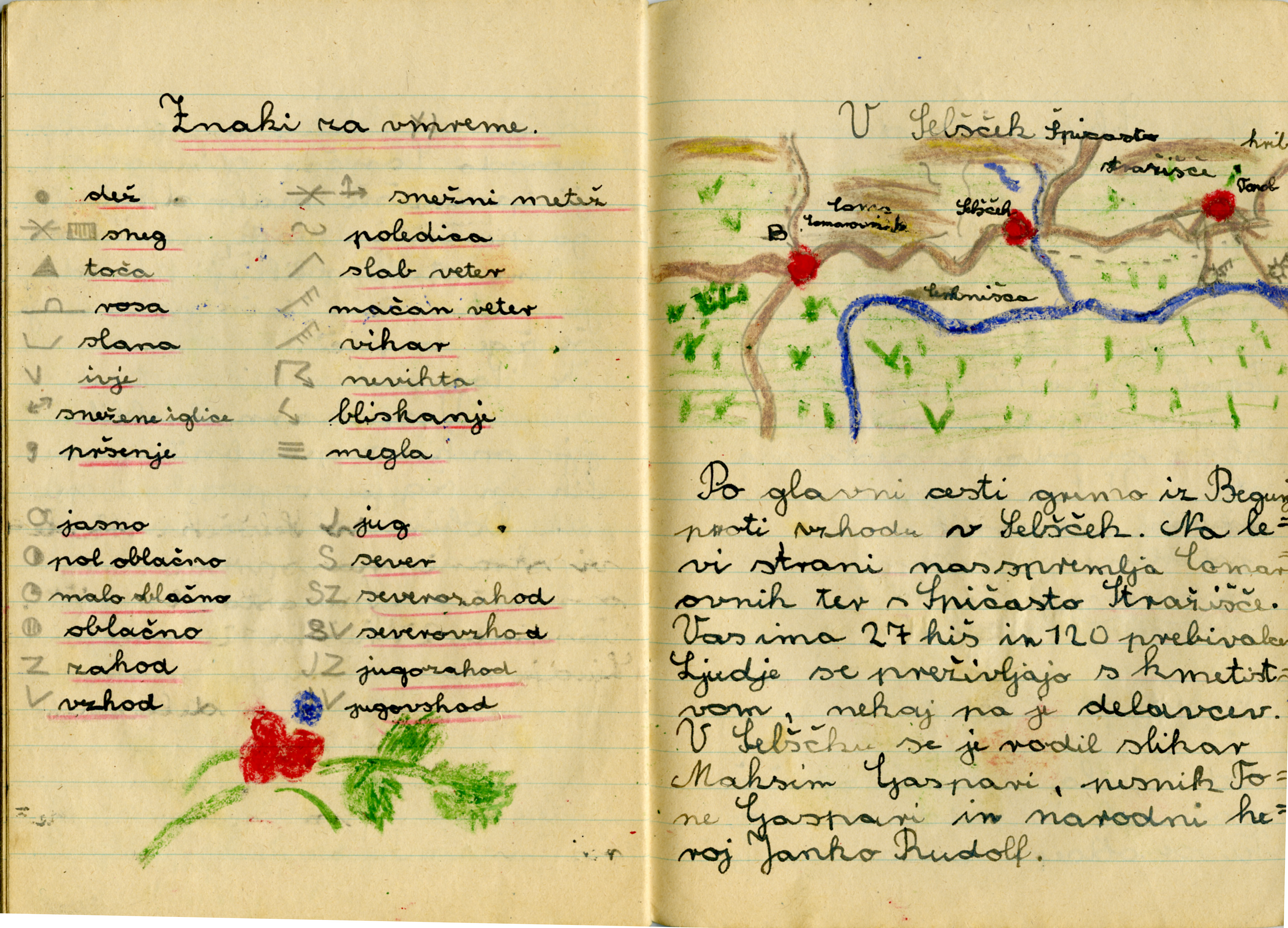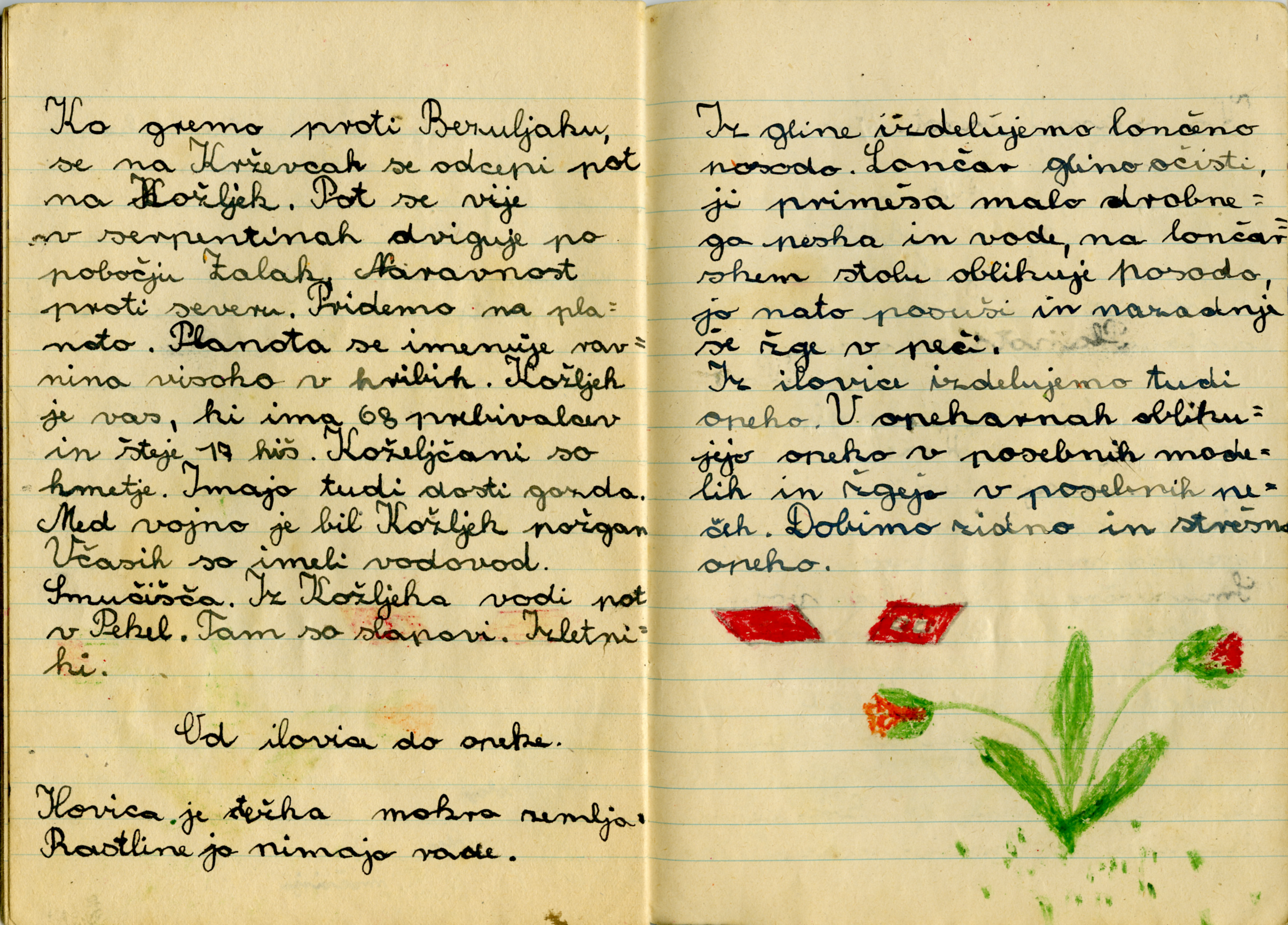 Iz zvezka je videti, kako se je Anica potrudila. Iz njene pisave in njenih risb sklepam, da je v šolo rada hodila.