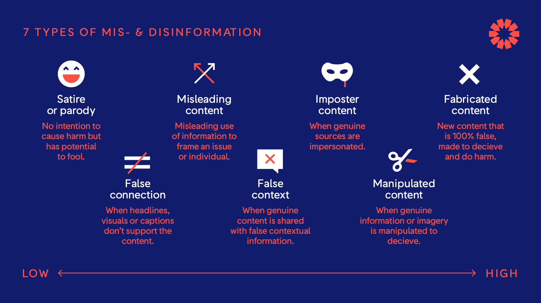 - misinformation is “false, but not created with the intention of causing harm."