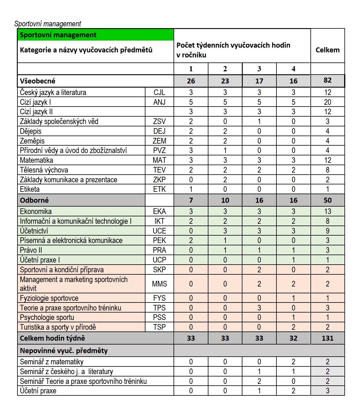kromě předmětů jako Ekonomika, Právo, Marketing, Management, Účetnictví, které jsou součástí oboru Ekonomika a podnikání, můžete studovat specializované předměty Sportovní a kondiční příprava, Fyziologie sportovce, Teorie a praxe sportovního tréninku a další