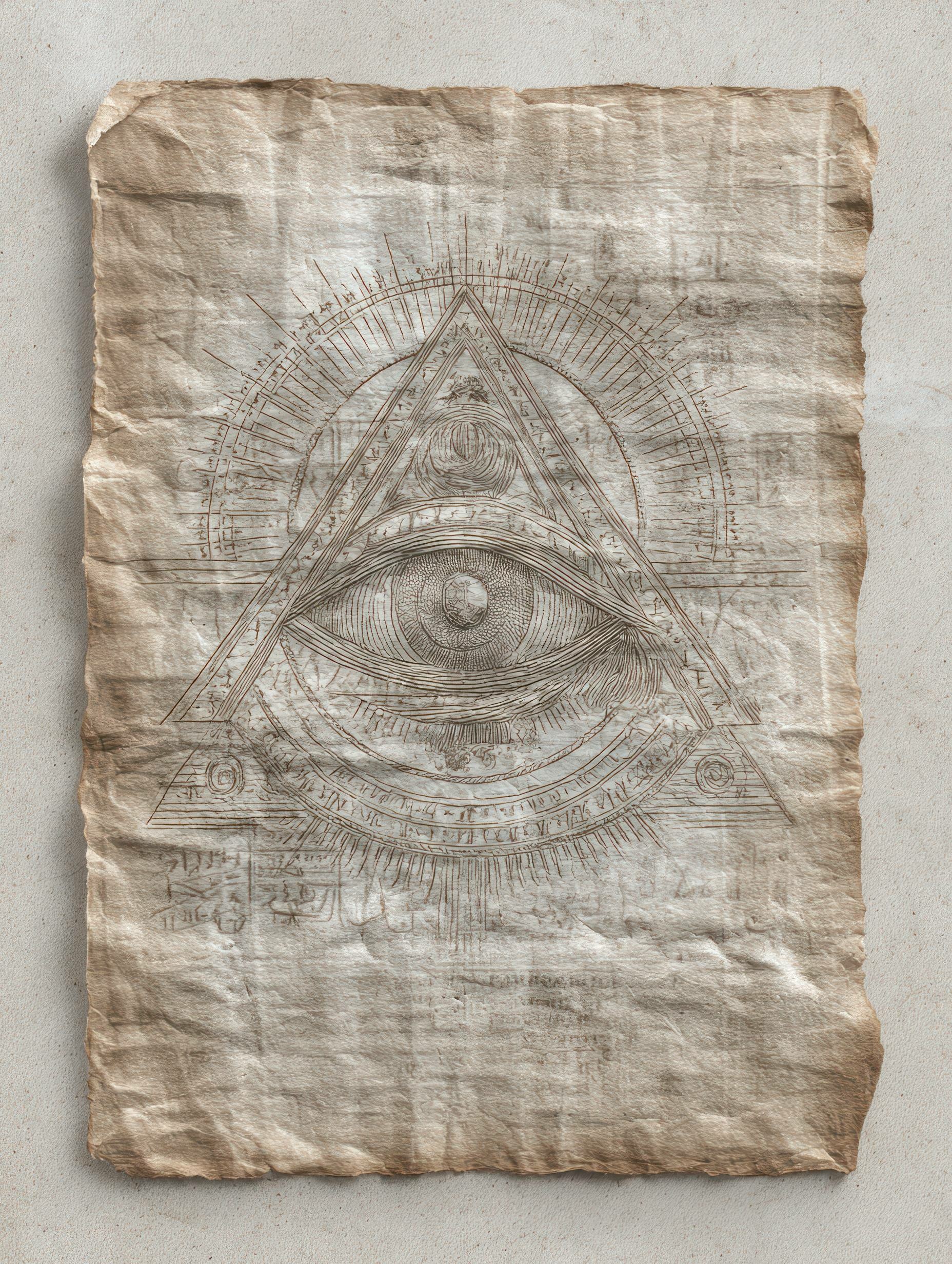 Creado con imágenes de nahwul - "Ancient scroll depicting all-seeing eye symbol with a vintage and mysterious aesthetic" • Sanchai - "A mysterious, dimly lit dissertation archive filled with ancient, dusty academic manuscripts" • Simona Sirio - "Detail of the masonic symbols over the portal of the Church of La Maddalena, sestiere of Cannaregio, Venice, Veneto, Italy" • Paolo Gallo - "Freemasonry door entrance detail" • 682A_IA - "Written on the stone wall "Dio vede tutto"/"God sees everything" and masonic symbol above"