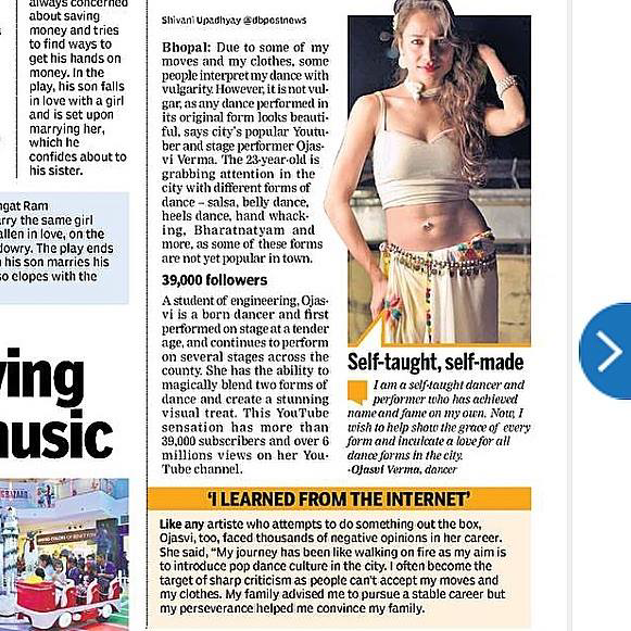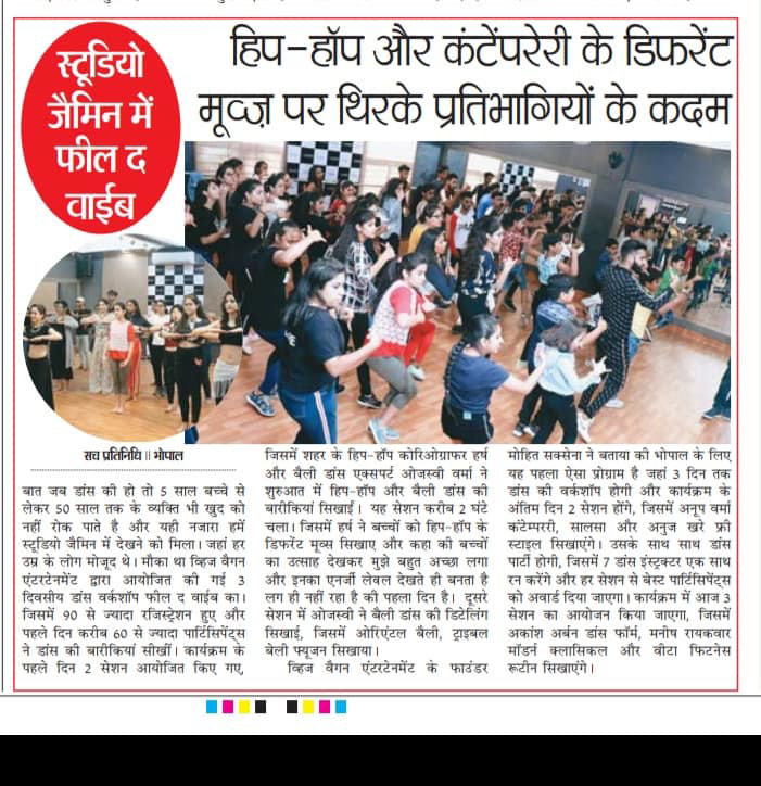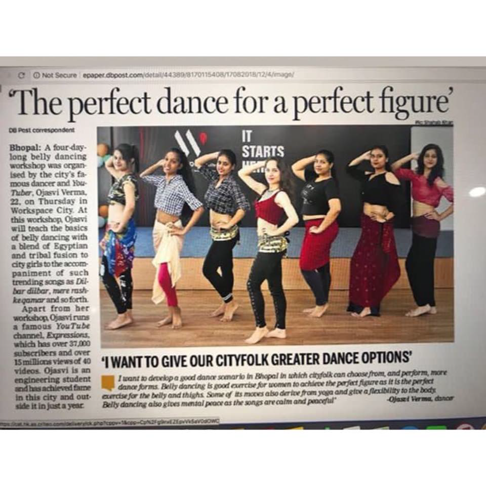- Featured newspaper article ‘Belly dance workshop – Feel the vibe’ by Patrika, 13th April’19