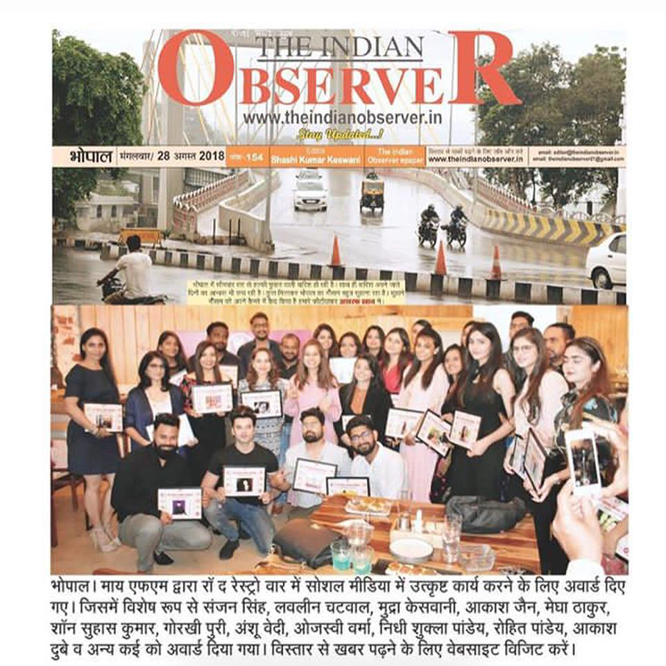 - Featured newspaper article ‘Social Media Influencers’ by The Indian observer, 28th Aug’18