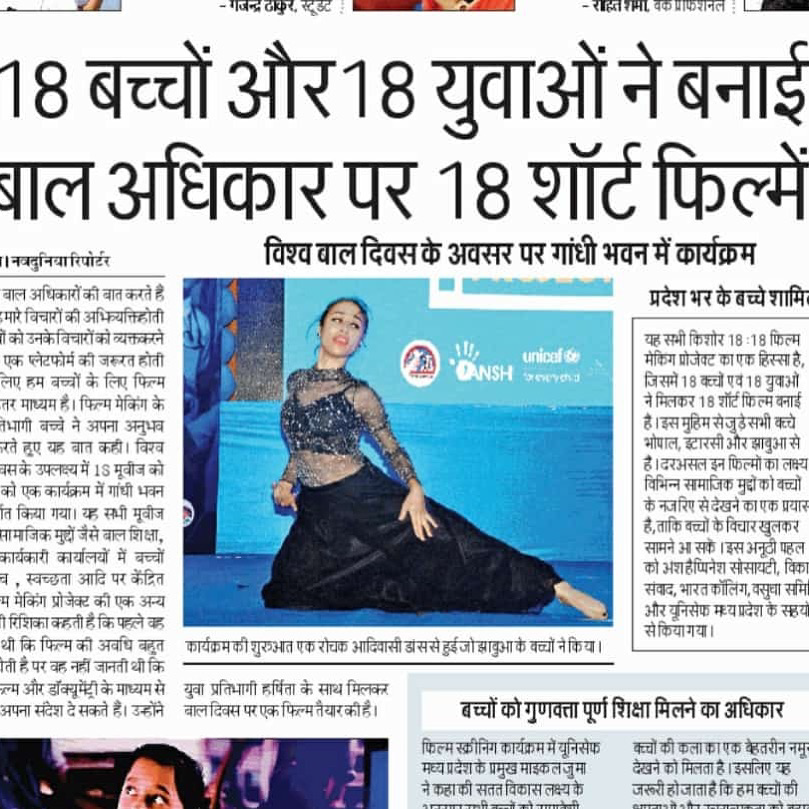 - Guest Performer at ‘18-18 film project screening’ GoBlue event by UNCIEF and ANSH Happiness NGO at Gandhi Bhawan, Bhopal.