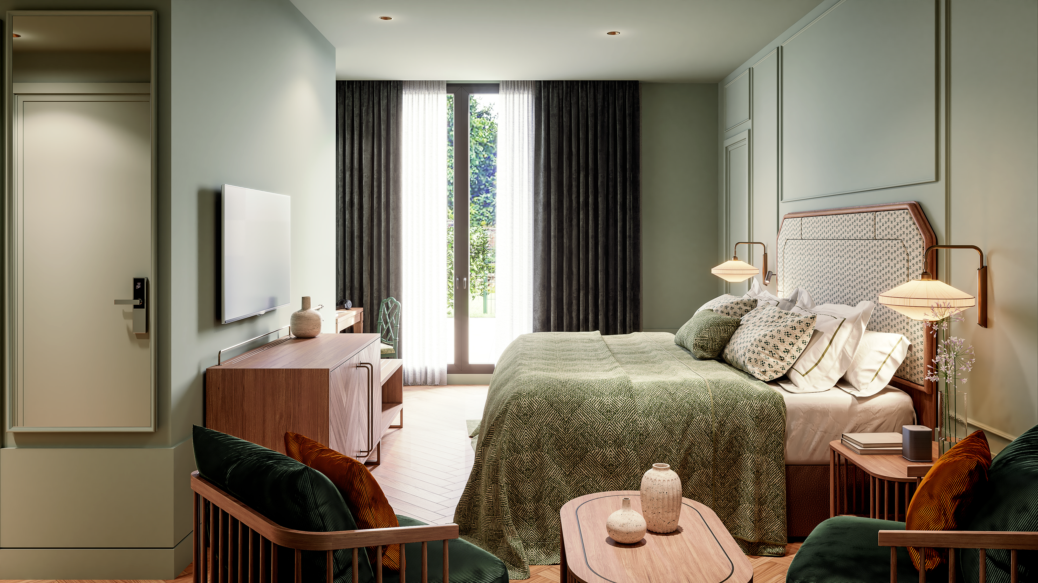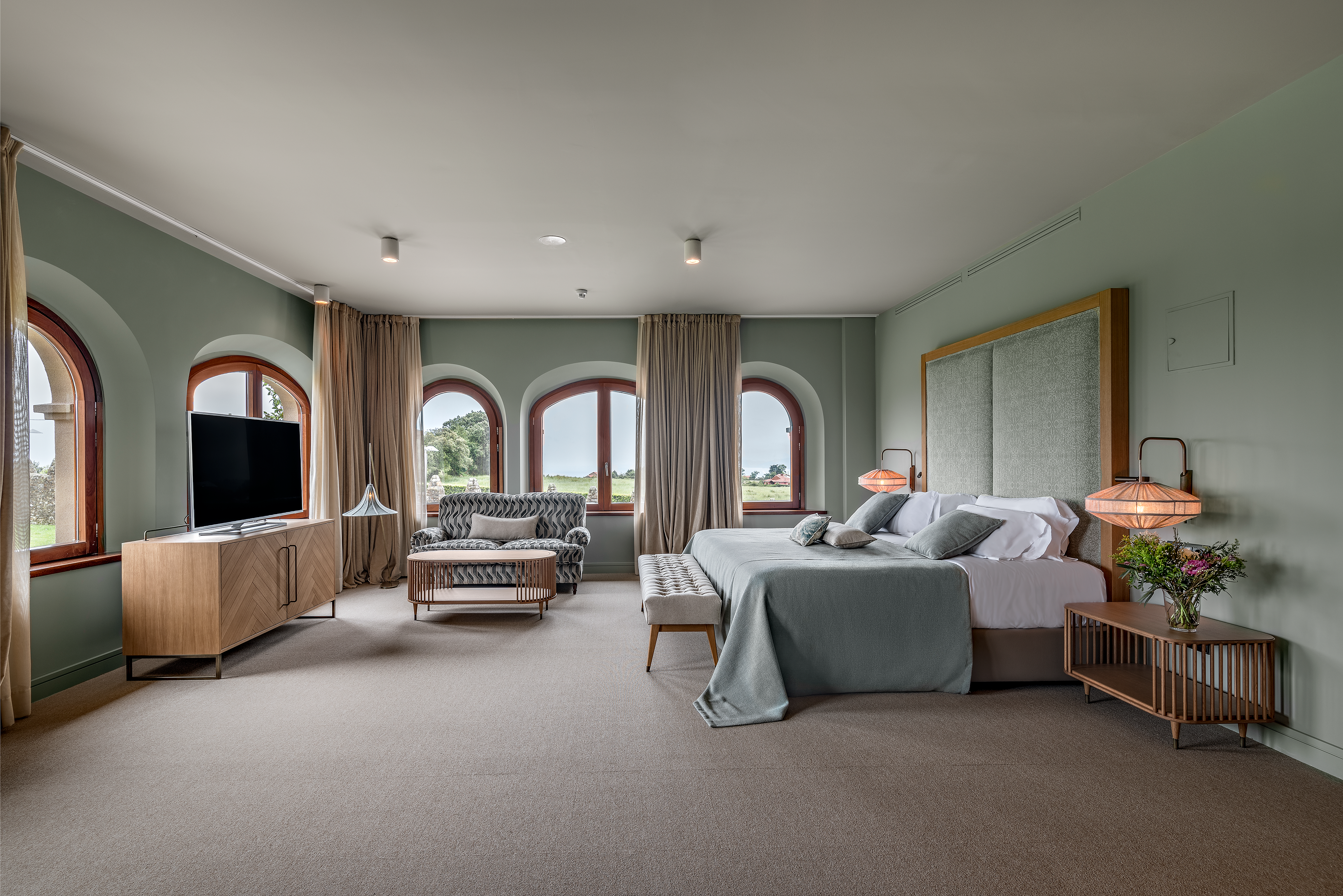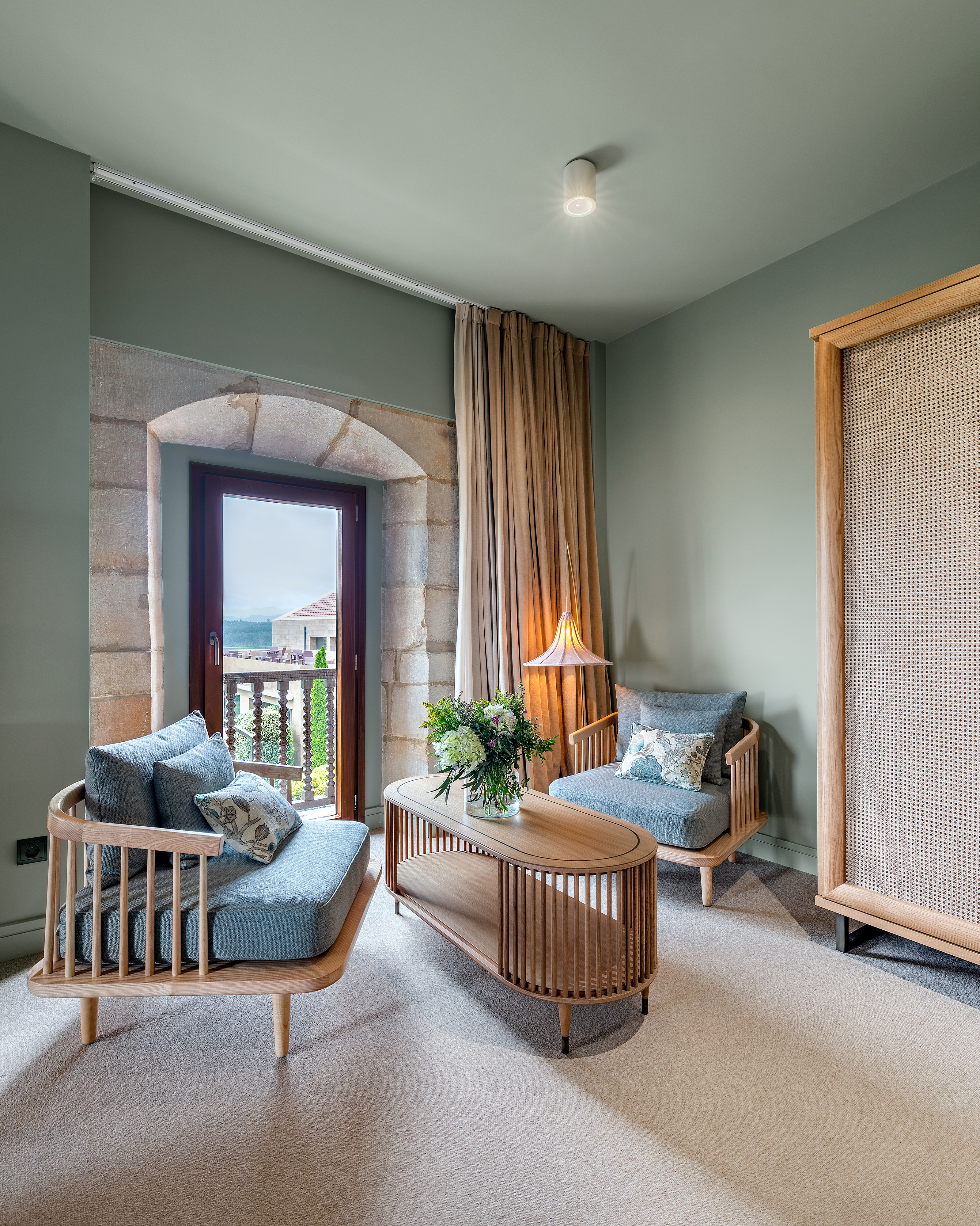 For example, in the Palace building, interior design is based on the figure of the Hidalgo (nobleman), giving prominence to reused furniture reupholstered with floral and geometric textiles, as a counterpoint to the new neutral, calm and welcoming colours.