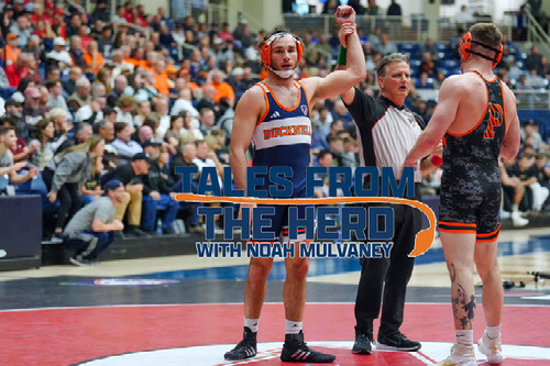 College is a transformative time in a young man's life. He departs from a sturdy, steady home life and familiar environment to leave his mark upon the world. He has the opportunity to discover who he is and what he stands for. Noah Mulvaney, Bucknell's star grappler at 165 pounds, left Wisconsin for Lewisburg and found his faith, met his soulmate, and developed into a star wrestler.