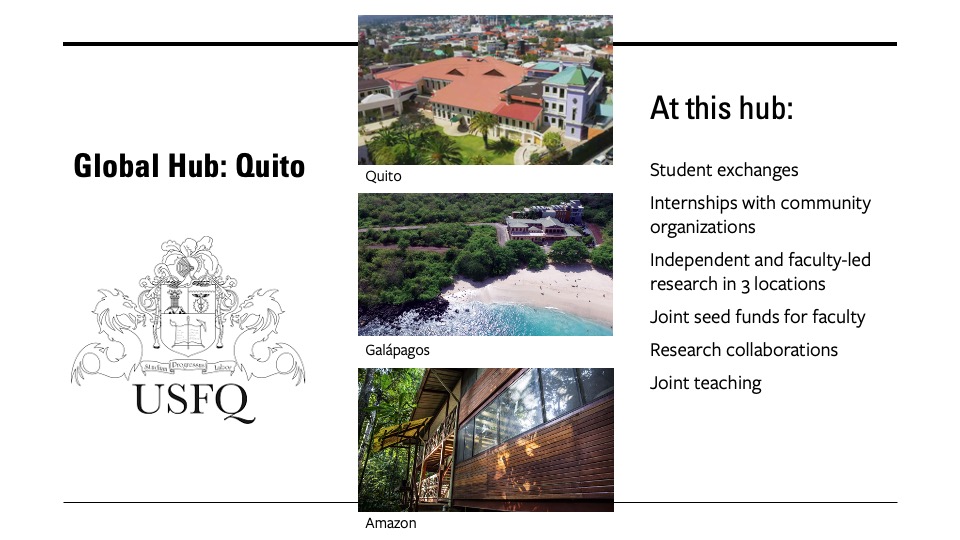 "In Quito, we are working with the Einhorn Center for Community Engagement and the Universidad San Francisco de Quito, or USFQ."
