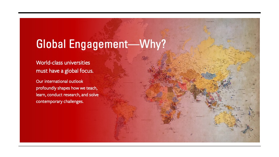 "Our international community is robust and impressive. We have 6,000 international students and many more visiting scholars, staff, and faculty who are international by origin. We also have a significant number of international alumni who live abroad."