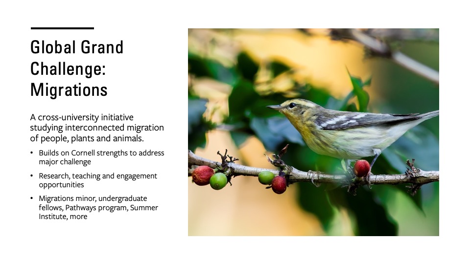"Our goal is not just to transform the way we study and understand the migration of humans, plants and animals but to make a difference on the ground for those who migrate and, in the process, put Cornell on the map as a world leader in the study of migrations writ large."