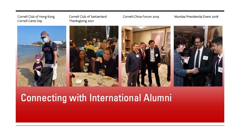 "Our international students go on to become international alumni. It is really something else to be in other countries and see the loyalty and love for Cornell—these alumni came out in force this past Giving Day, and we are all so grateful for their dedication."