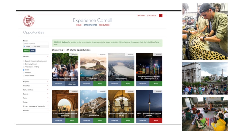 Every year an average of 2,400 Cornell students go abroad for coursework, internships, engaged learning, and research.