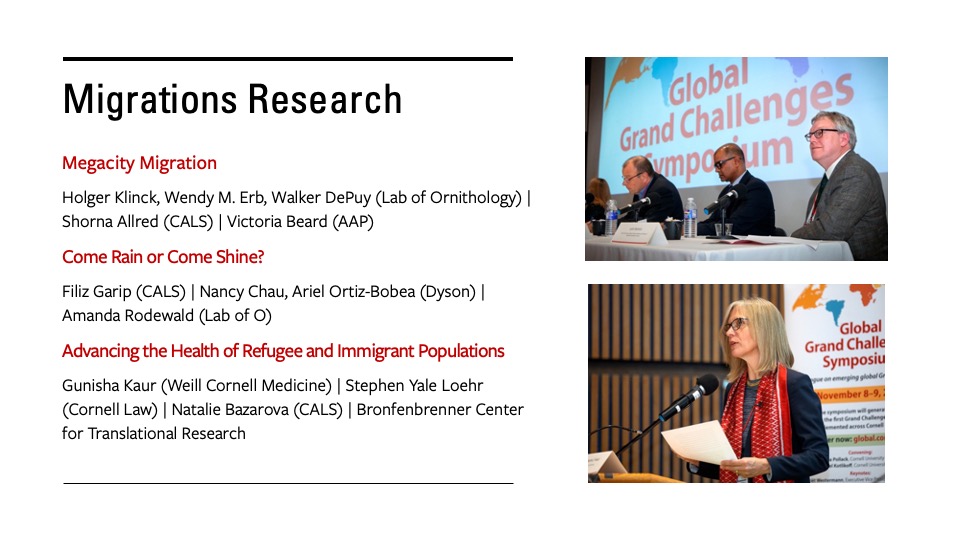 "Our first Global Grand Challenge was Migrations. We define Migrations as the movement of people, plants, and animals, and the context in which they move. The faculty leads for this initiative come from seven different colleges and schools."