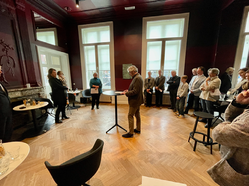 Namens de Stichting Dichter in Beeld wil ik vertellen dat de stichting zo blij is dat ze mocht meehelpen dit prachtige gedicht op deze plek te verwezenlijken. Enige tijd geleden kreeg Dichter in Beeld plotseling een dichter in beeld. Eerst nog wat vaag maar gaandeweg steeds dichterbij. Hoe dat allemaal gebeurde zal Servé Minis straks vertellen.