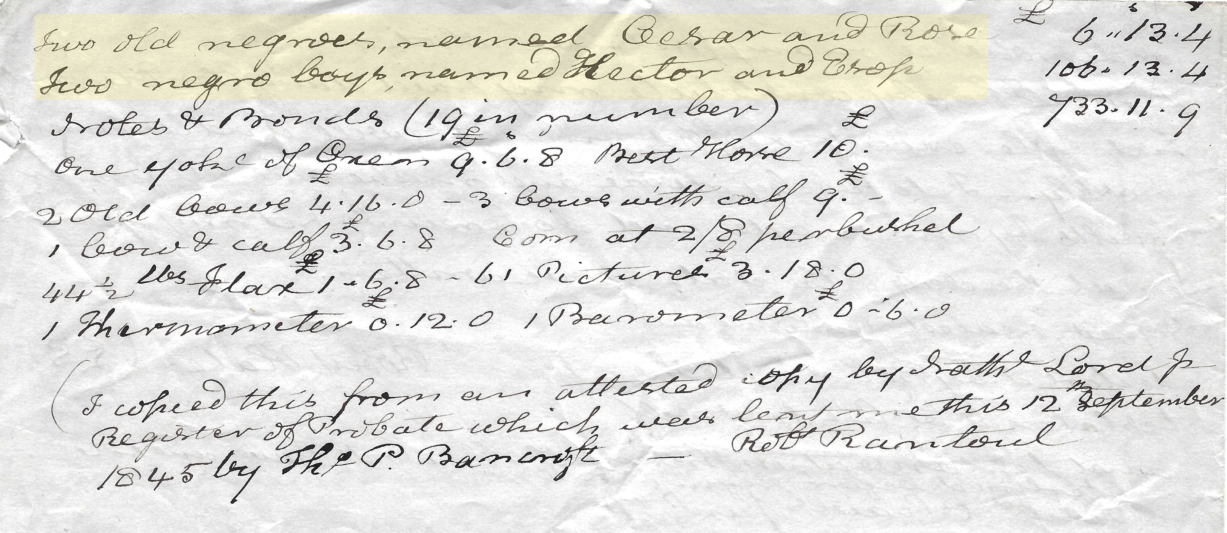 To read about the lives of Brutus Julius Mozambique and Cloe Turner, two enslaved people whose lives were entwined with that of their enslavers, the Larcom family, click below to go the next section, “Ye are the Children of One Father.”