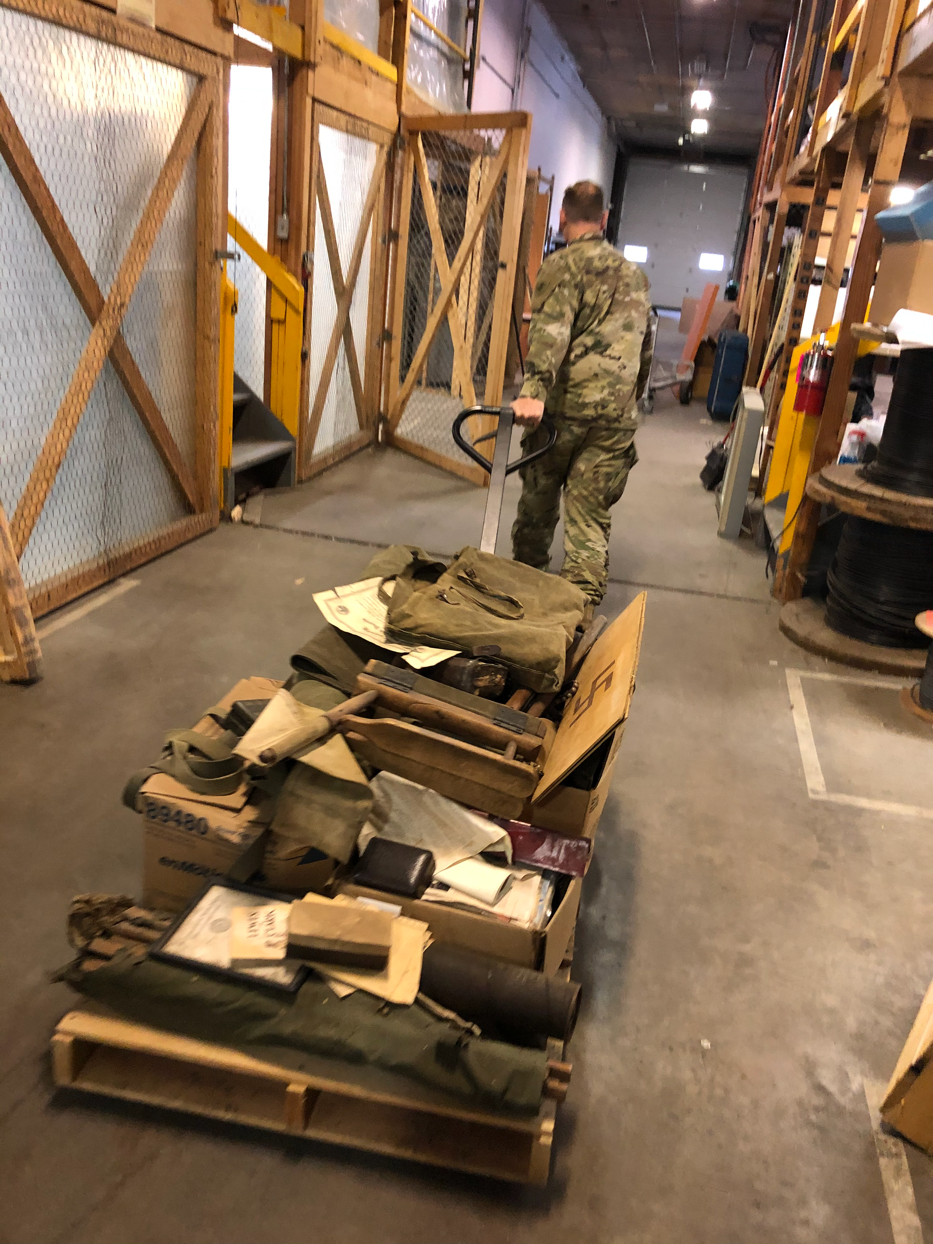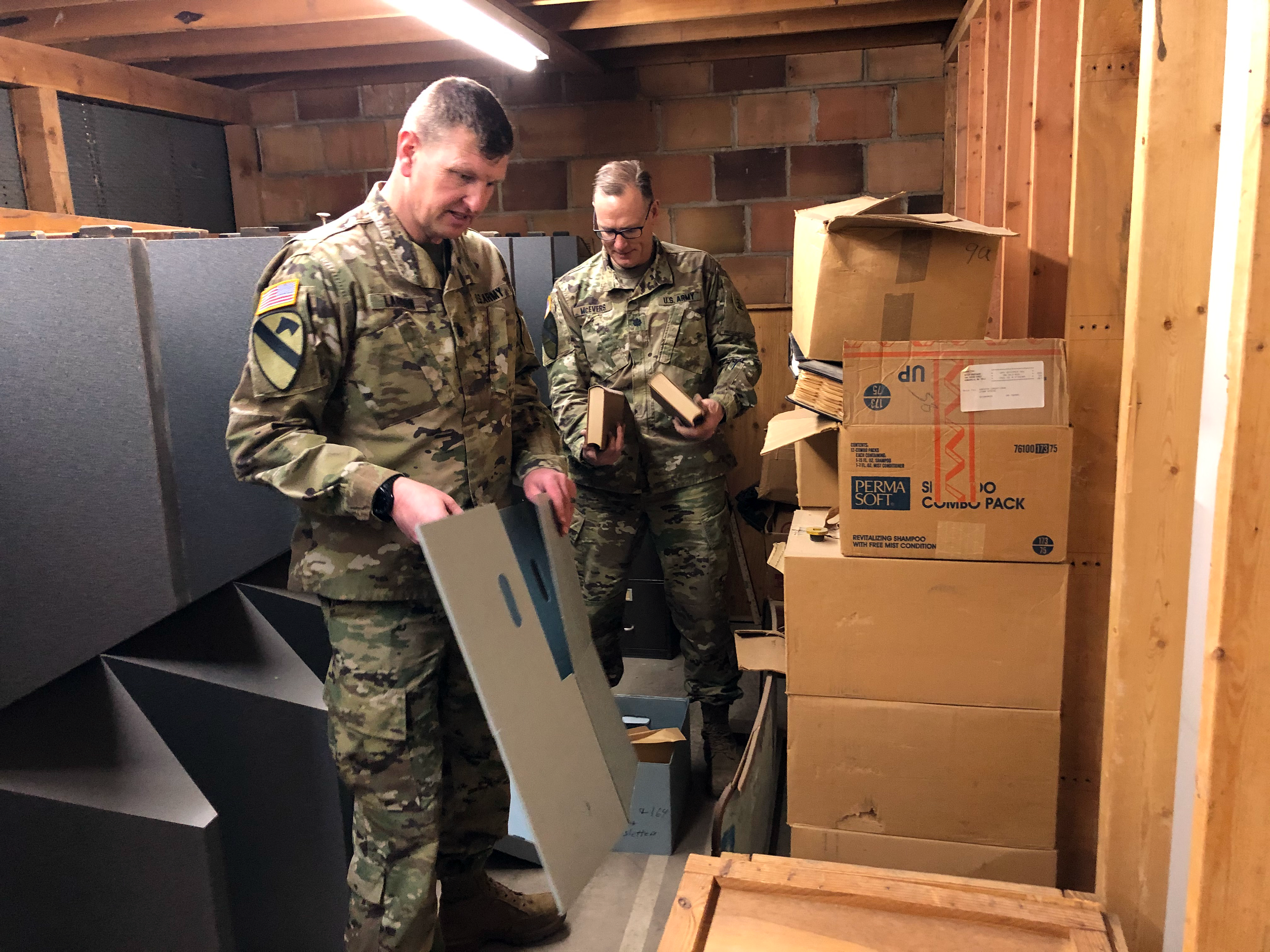 Members of the N.D. National Guard's J-5/9 Strategic Plans, Policy and Outreach answered the call from the historian to help organize some of our historical property stored at Fraine Barracks on Feb. 27. We have many items stored in the warehouse ranging from hats and uniforms worn during World War I and II to unit recognition plaques from the 1950s and 1960s; from unit colors that flew overseas to guidons carried to annual training. These items help tell the rich story of the N.D. National Guard. We are currently assessing options for a military museum.