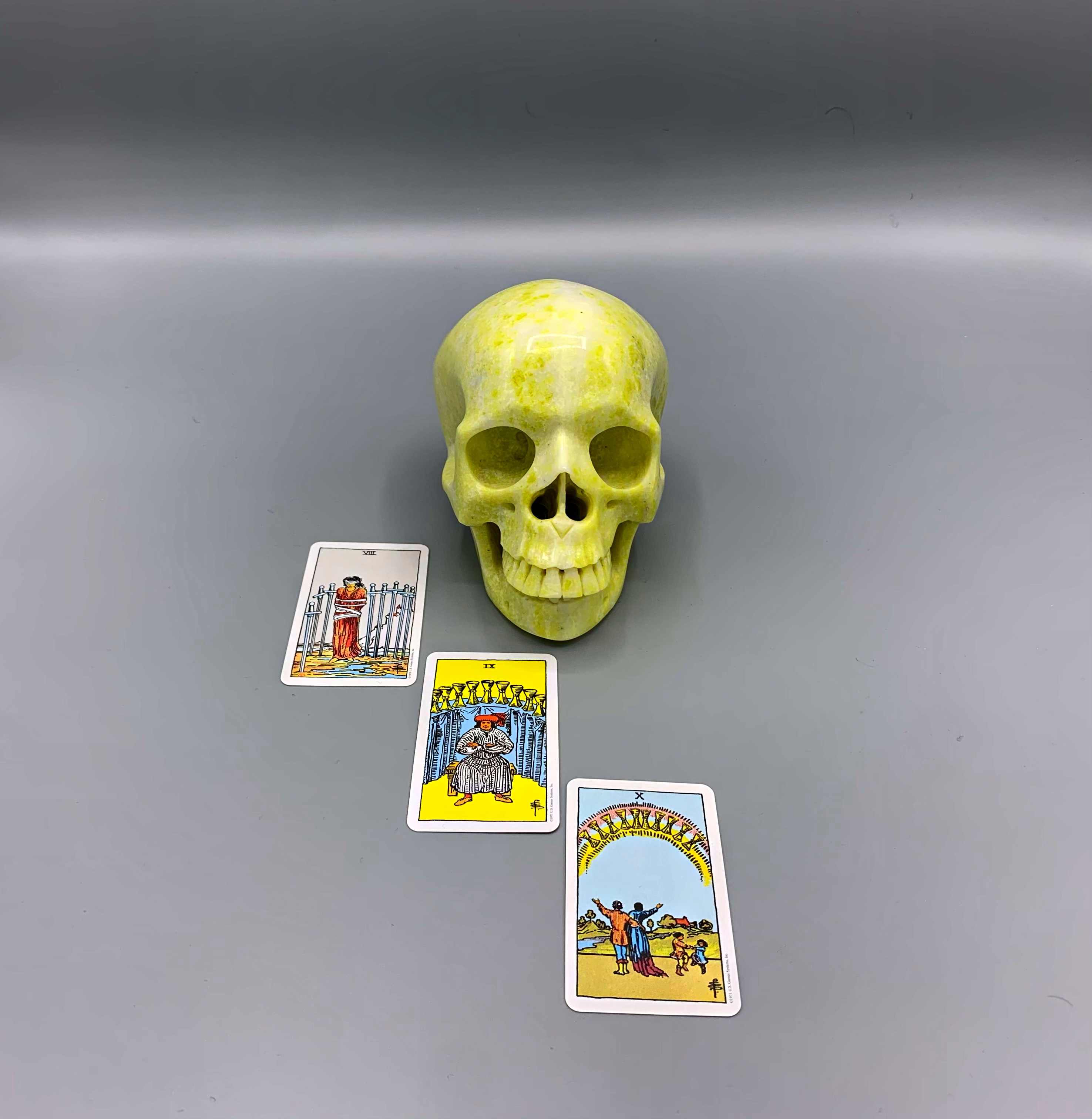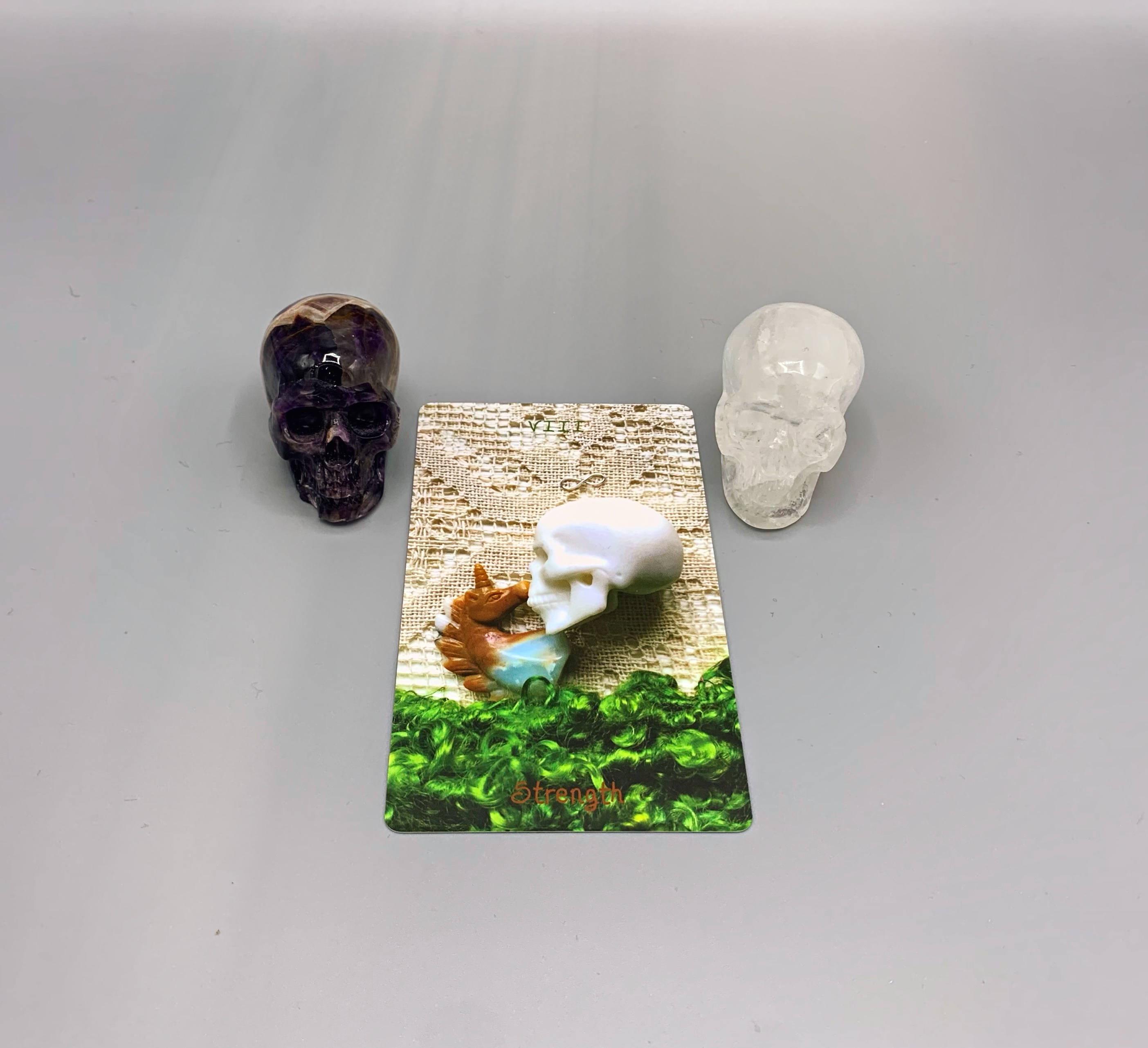 The following is the Thinking This Community Forecast. We are all passing through the cycle of this year together. The tarot cards are giving us a look at the challenges and tasks we must face each month that will enable us to create ourselves in the highest way. There is an affirmation for each month which is intended to be recited daily. The crystal skull paired with the card will make it easier for you to hold the energy of the affirmation. Simply breathe deep, relax, and look at the crystal skull for as long as you’re called. The question that applies to the card draw for each month is: