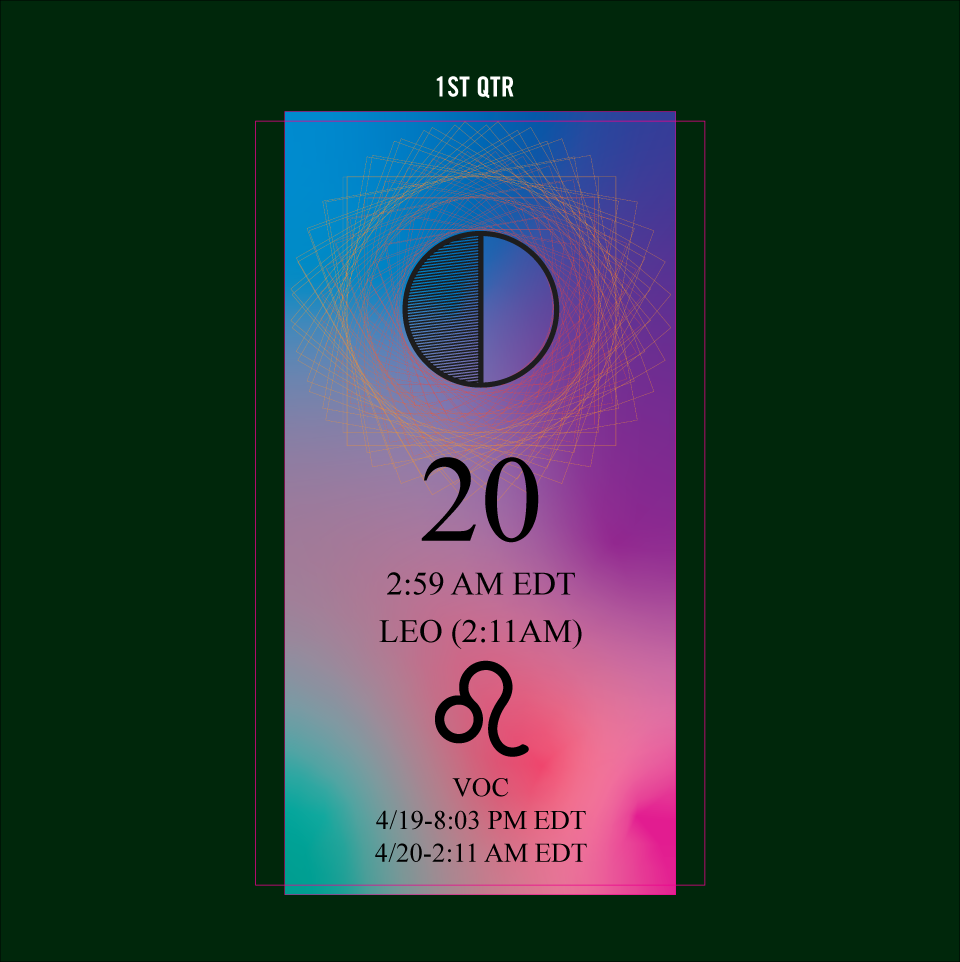 Tasks for April: Take the steps to heal your relationship with yourself so that you can feel free to love. Is there an injustice that you can help resolve? Shift your perspective to the abundance you have. Don’t worry if it seems shallow. These are tools to re-energize you so that you can create anew.