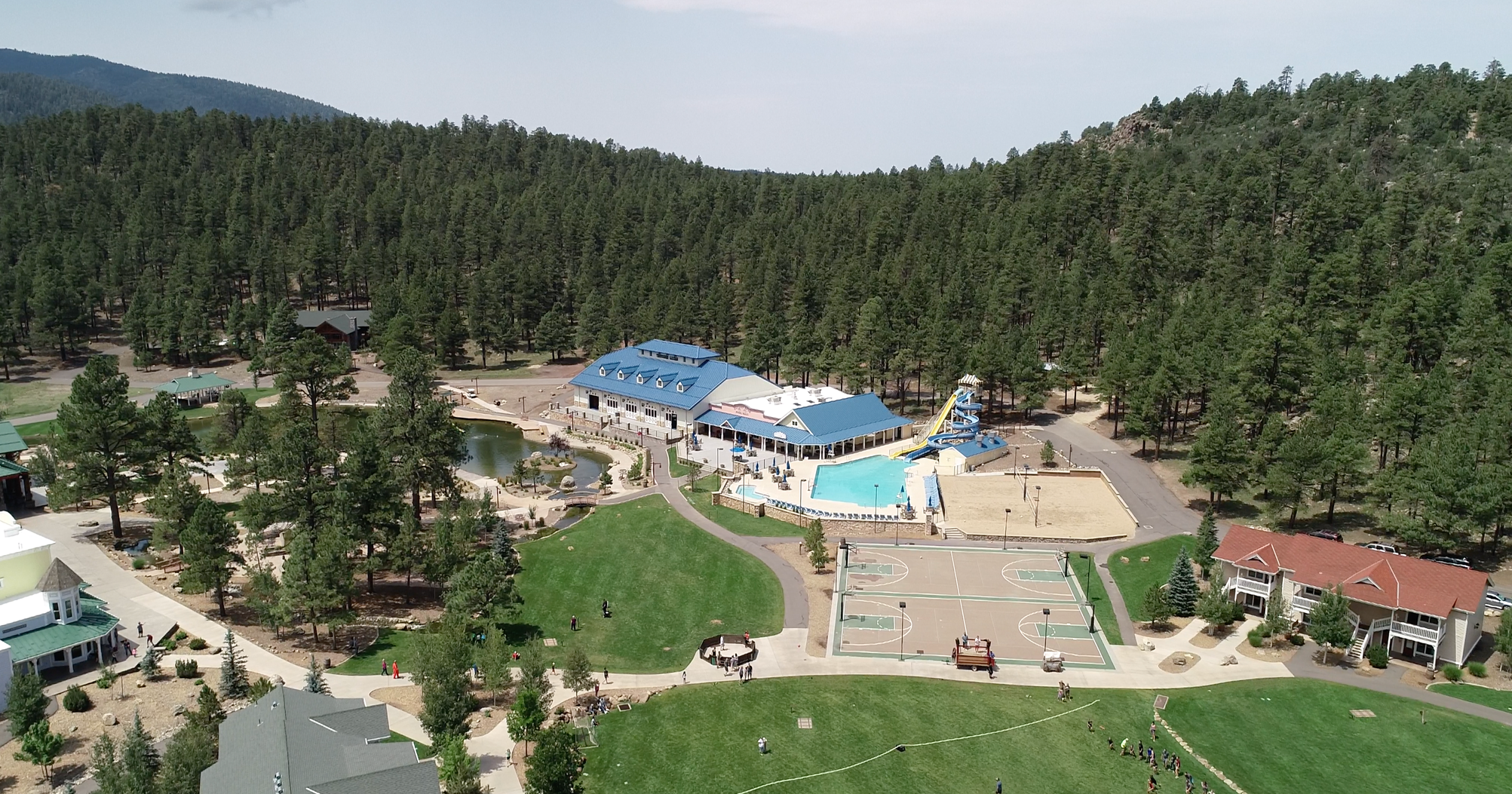 Our water activities include a pool with two water slides and a lake with a blow-up climbing structure. You and your family may use this at any time during free time openings. Please accompany any small children when at water activities.