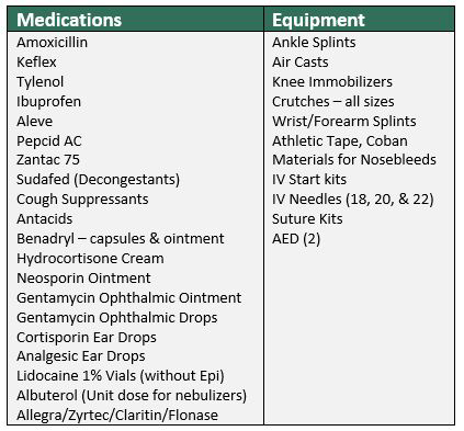 Doc Holliday’s Infirmary will maintain an inventory of prescribed medications, mainly antibiotics, and some pain medications. This will allow the Physician team to start prompt treatment for ill or injured campers during times when the pharmacy is closed. A prescription can be called in if needed to the pharmacy. Prescriptions must be paid for by the camper, unless it is an injury from a camp-related accident. The patient’s parent/guardian must be notified to ensure the prescriptions called in are filed under the patient’s insurance. There is one pharmacy in Williams, located in the Safeway Grocery Store. For this reason, physicians need to provide the camp with a copy of their DEA registration card.