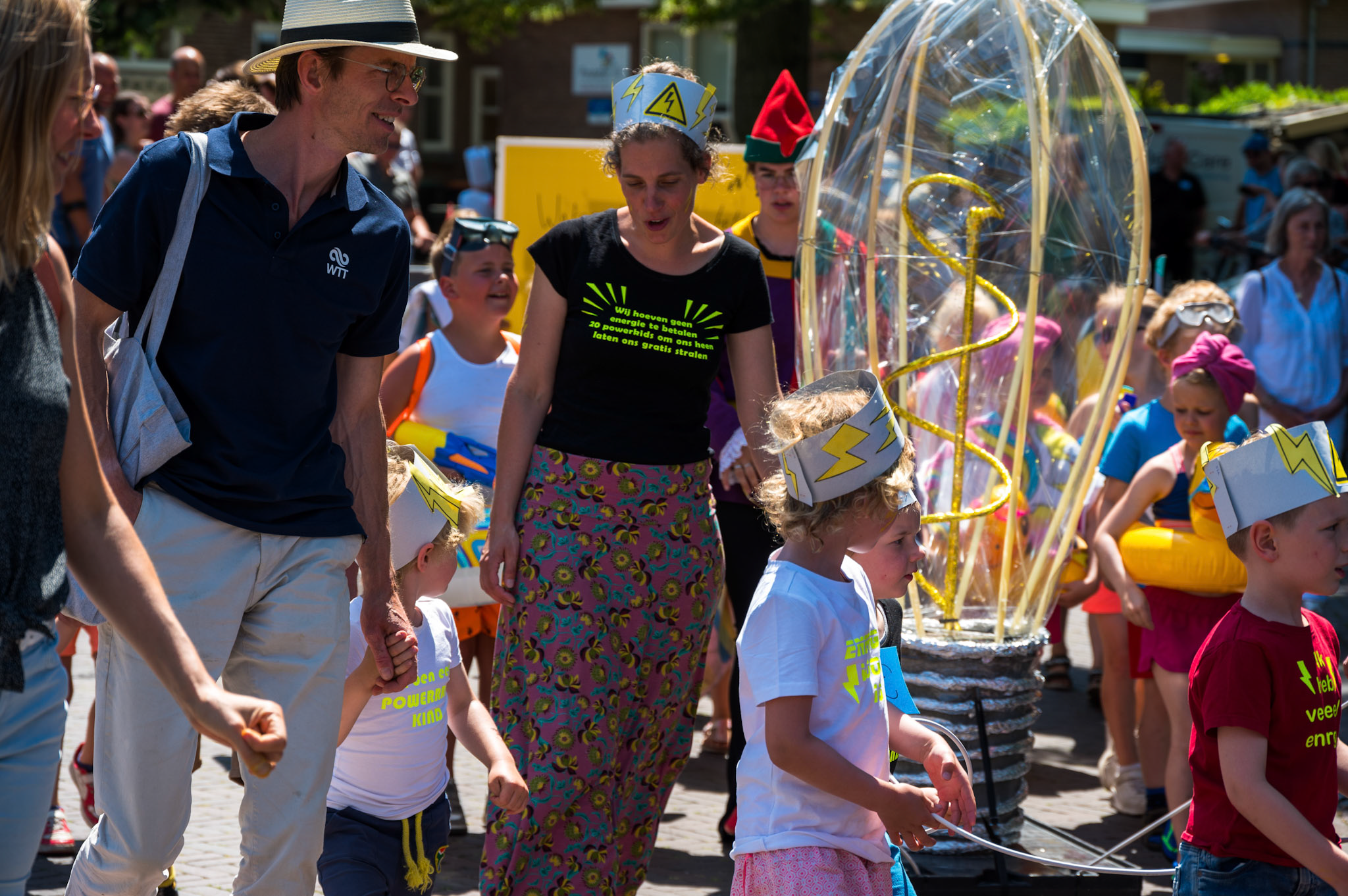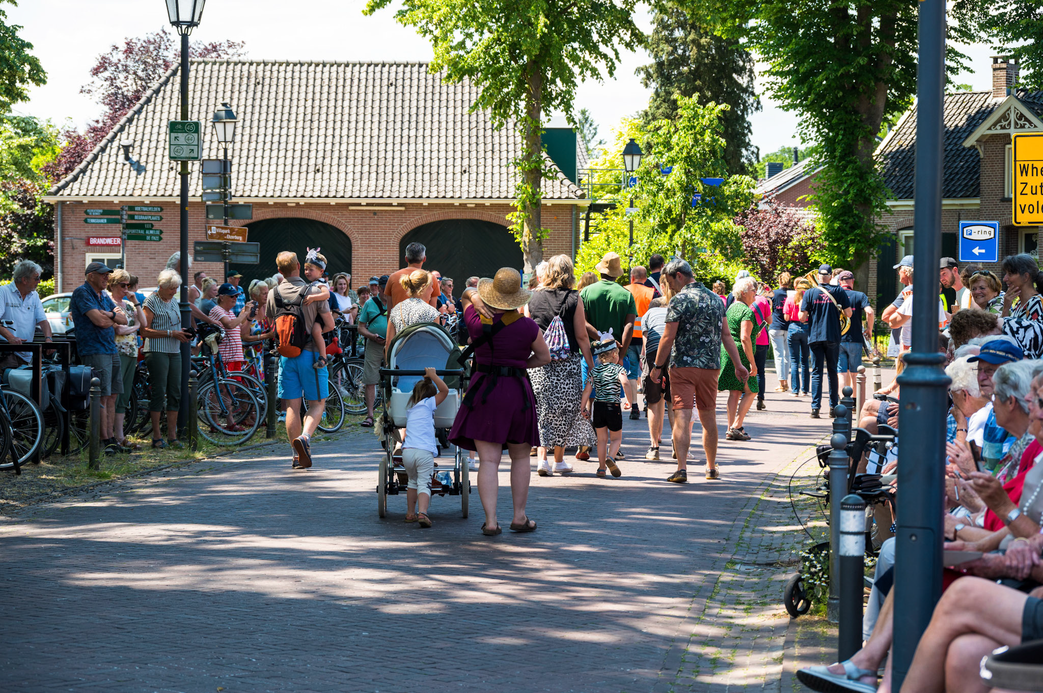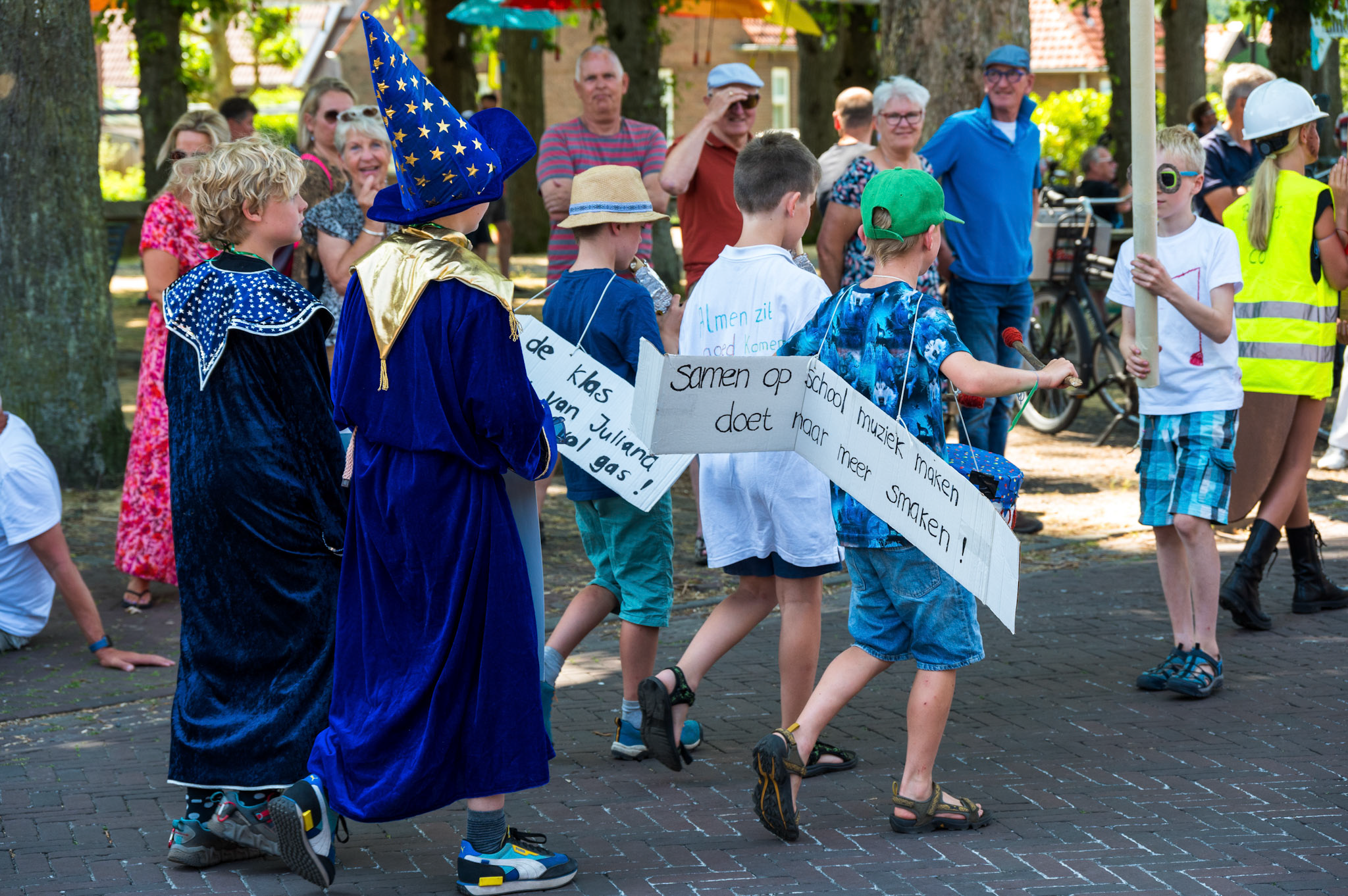 En toen was ons knooppunt geblokkeerd en bij aankomst begon deze optocht. Snel de camera gepakt. Zo leuk! In Almen is het drie dagen feest. In de middag laten we ons verrassen door de mooie uitbeeldingen in de optocht voor de schooljeugd begeleid door muziekvereniging Juliana. De kinderen gaan mooi verkleed en beelden actuele onderwerpen uit.