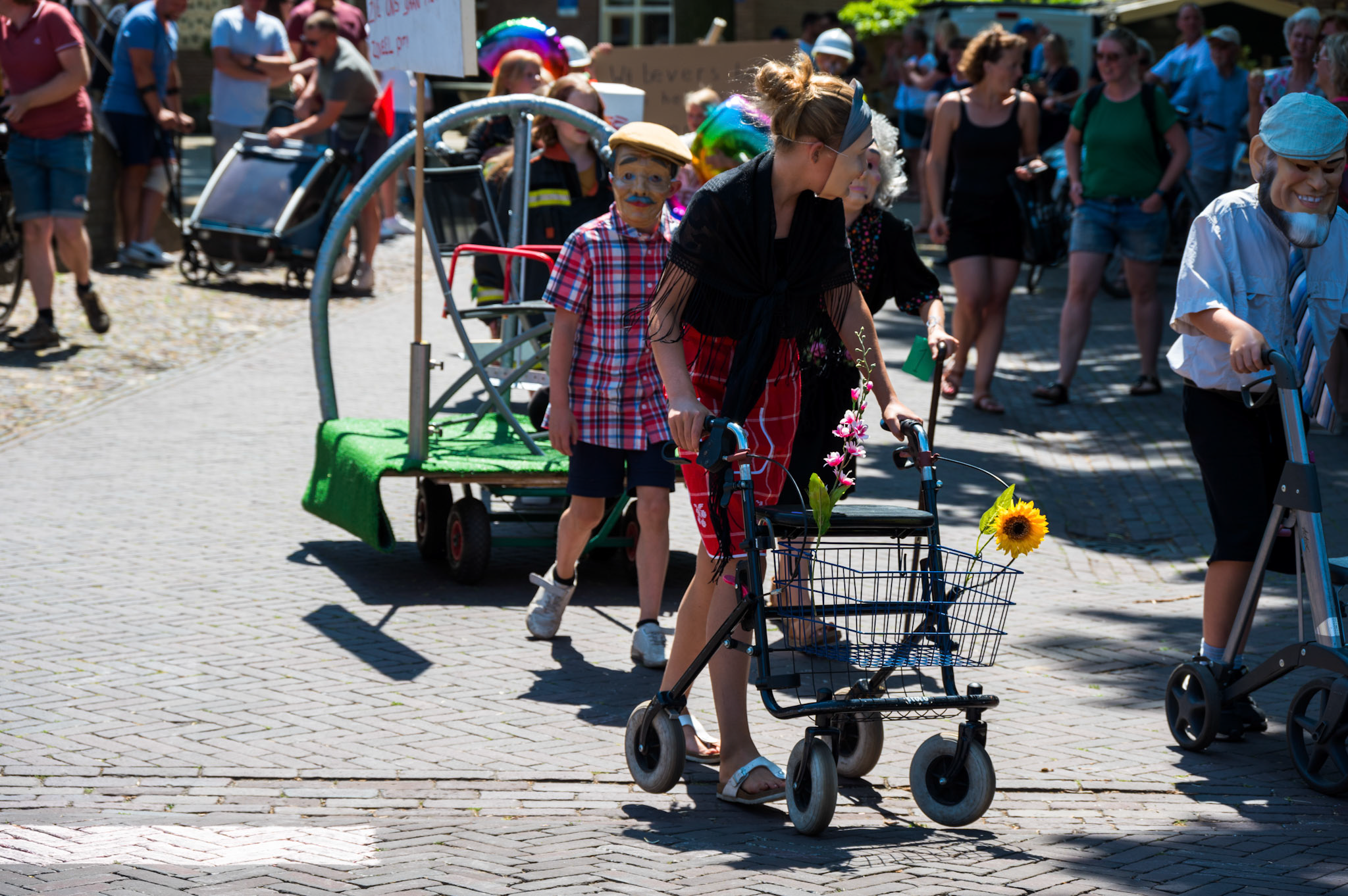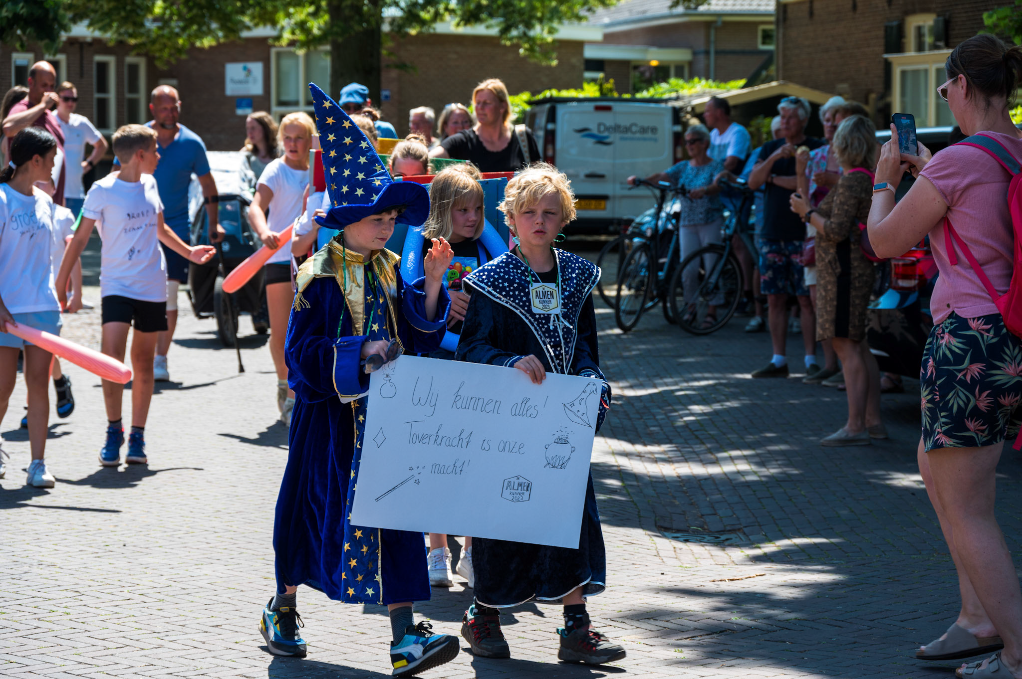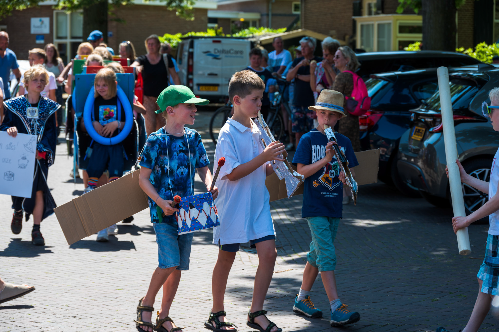 En toen was ons knooppunt geblokkeerd en bij aankomst begon deze optocht. Snel de camera gepakt. Zo leuk! In Almen is het drie dagen feest. In de middag laten we ons verrassen door de mooie uitbeeldingen in de optocht voor de schooljeugd begeleid door muziekvereniging Juliana. De kinderen gaan mooi verkleed en beelden actuele onderwerpen uit.