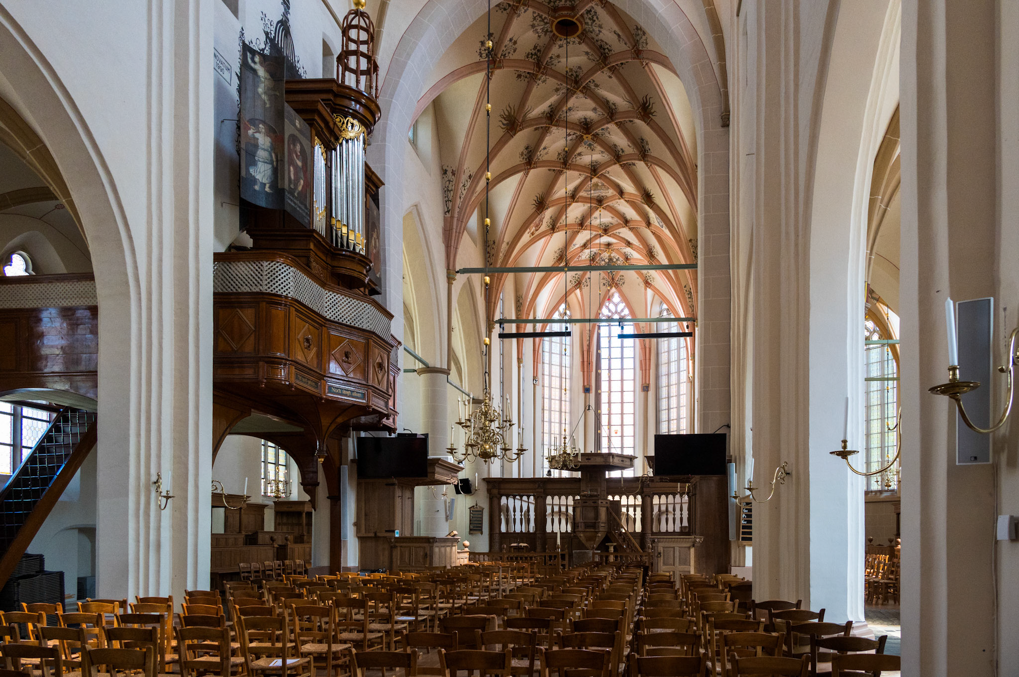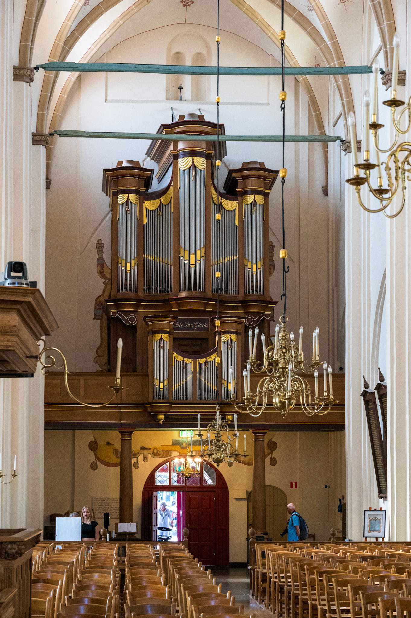 Een lust voor het oog om het interieur te bewonderen. Zoveel geschiedenis en pracht en praal. We kregen een rondleiding door een vrijwilliger. De stoelen zijn zogenaamde Deventer stoelen. De stoelen staan ook in een soort van rails, makkelijk om mee te schuiven bij calamiteiten.