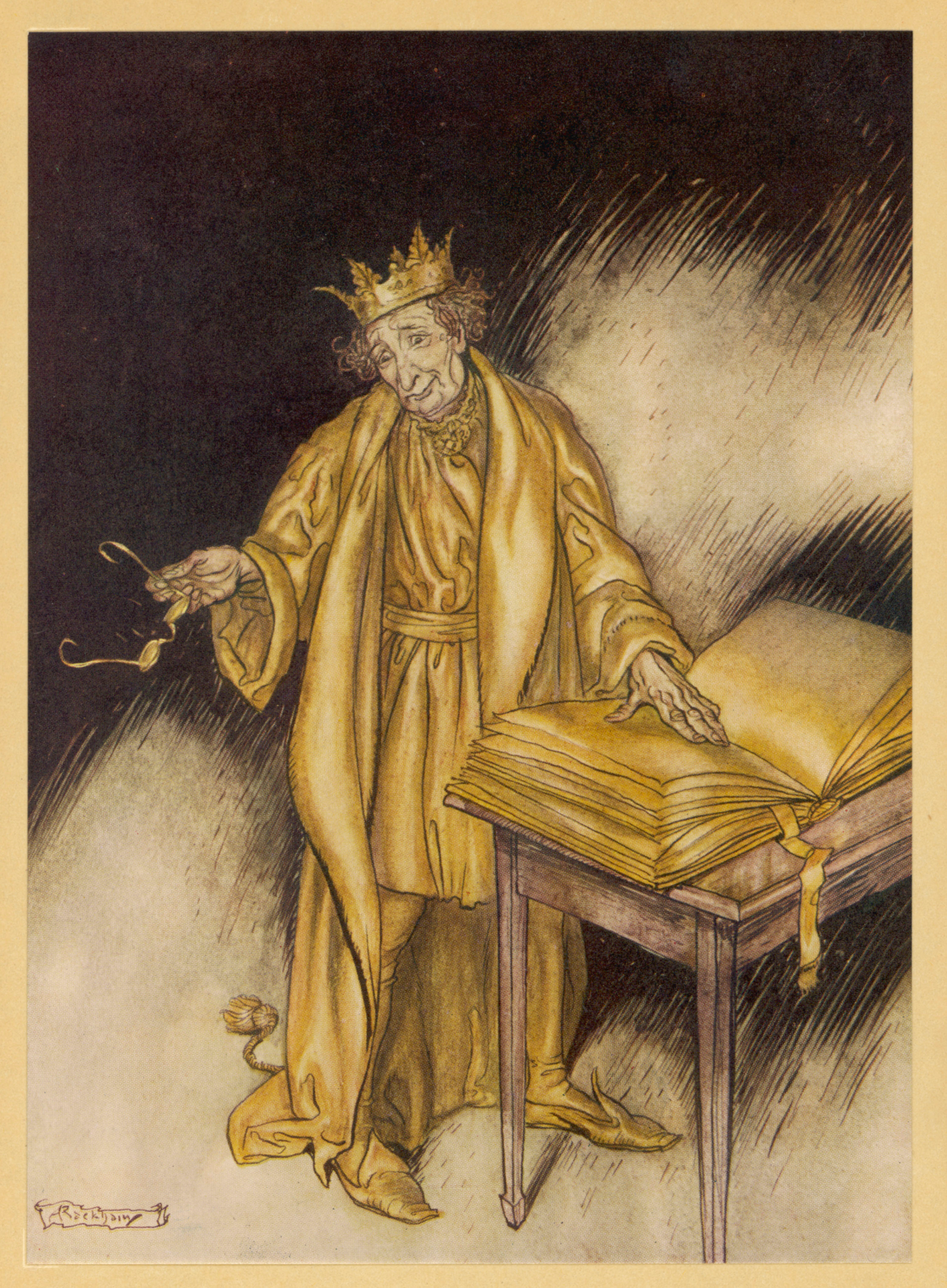 The pair was so upset that Marygold reached to comfort Midas, and Midas reached to comfort her. But the King, forgetting his curse, turned the one real thing he loved to gold too.