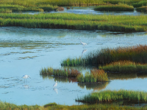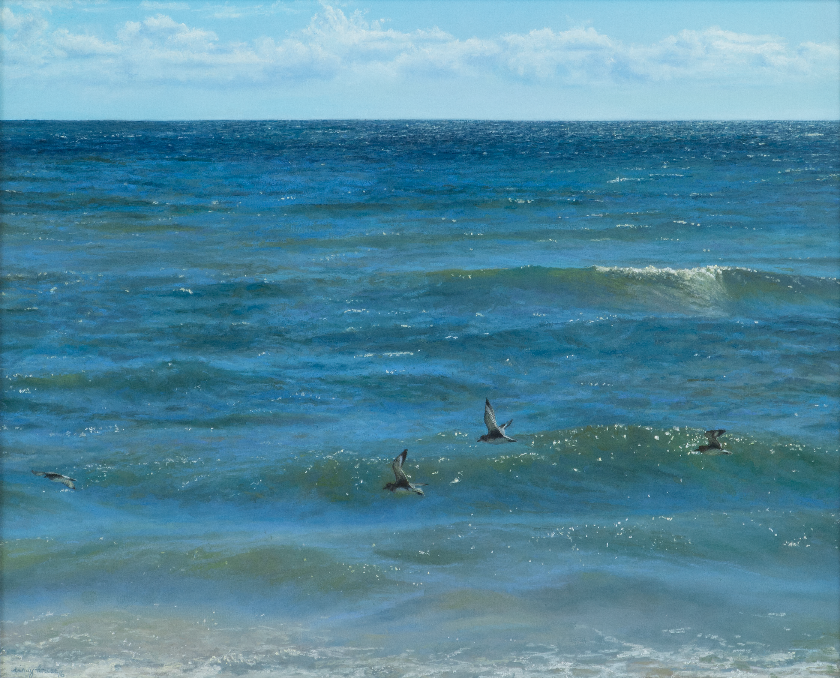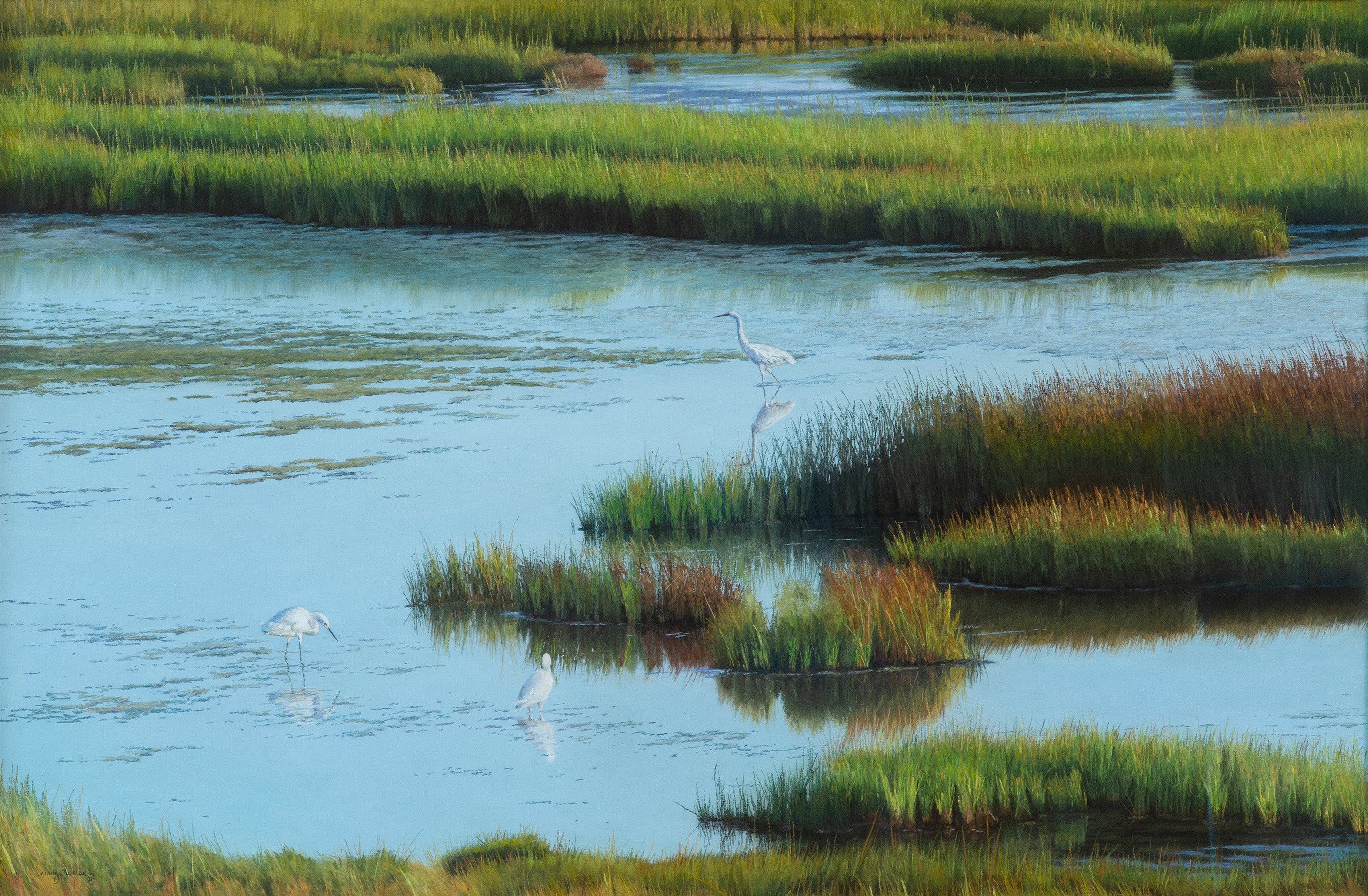 A serendipitous outing to the National Gallery of Art in 1987 brought clarity. There she viewed William Merritt Chase: Summers at Shinnecock 1891-1902, an exhibition of his brilliant landscapes, and the experience gave her the impetus to charter a new path. Cindy reflects on this exhibition and the influence it had on the direction of her career: "I was blown away by these paintings of Shinnecock Hills...And I'd said, 'This is the kind of work I would like to do. These are the kinds of landscapes that I would like to do. And if you took out the people and...put birds in instead, I would really like to do it.'" Following this artistic epiphany, Cindy enrolled in a pastel workshop with famed artist Albert Handell and selected pastels as her chosen medium because of their unique spontaneity and her ability to pick them up or set them down as needed. Through her studies under Handell, Cindy learned how to imbue her paintings with an oil-like quality and a depth of tone.