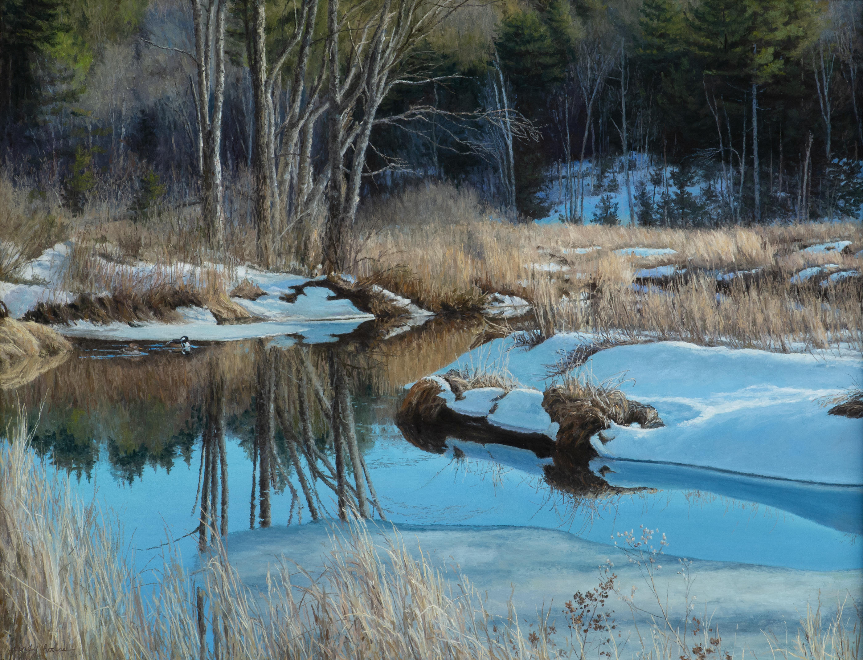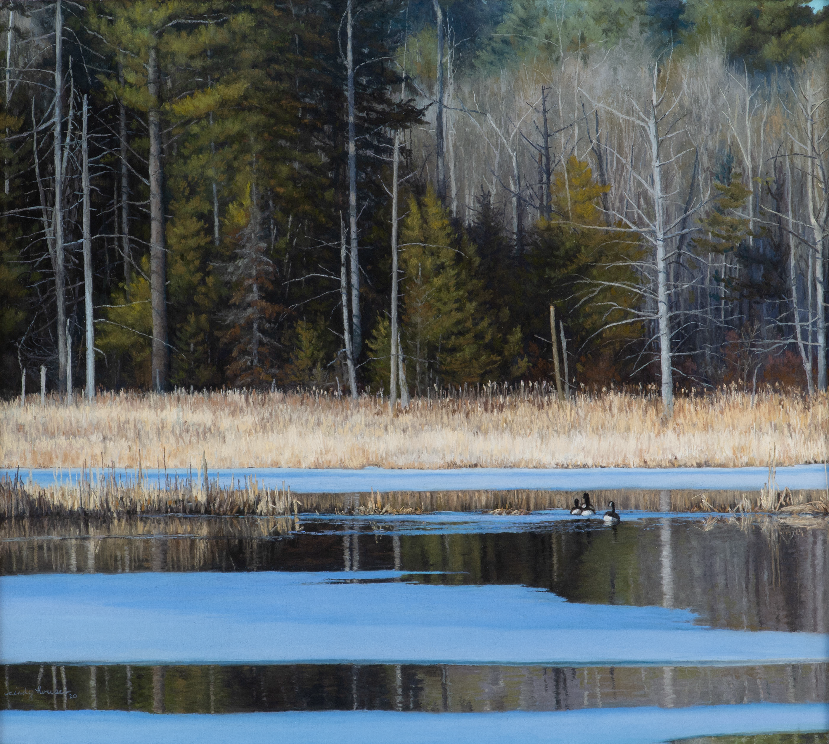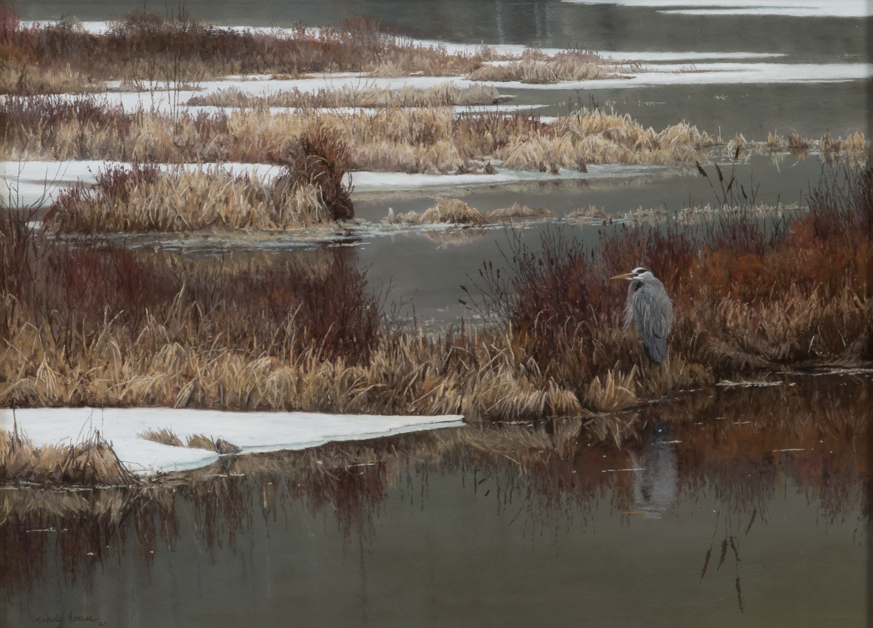The harmonious co-existence between the landscape and the birds are vital to the success of Cindy’s paintings. She has won numerous awards for her work, including being chosen for the Master Wildlife Artist designation at the Woodson Art Museum in Wausau, WI in 2018, an honor that has been bestowed on less than forty artists since 1976.