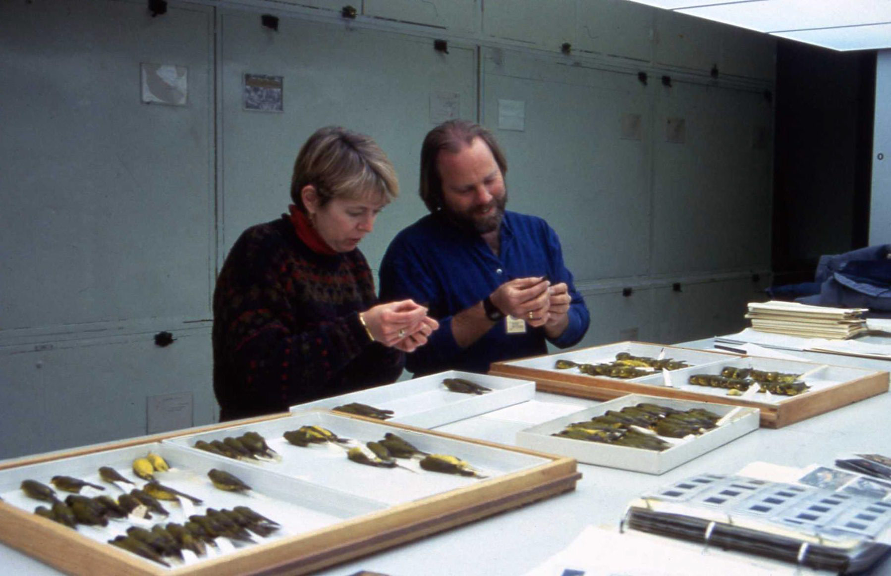 Cindy earned her degree in wildlife biology at the University of Maine and began her career as an avian field-guide artist. She contributed to important publications including the inaugural National Geographic Field Guide to the Birds of North America, the Peterson Field Guides Series' Field Guide to Warblers, and the Reader's Digest Association's Book of North American Birds. This work required painstaking accuracy in its depictions - the pattern, length and color of feathers, the proportions of body to wing, the shape of a beak or talon, must all be true to life. Describing this period of her early career, Cindy recollects, "It was good for about ten years...I liked the challenge of designing plates, working in a museum with all the specimens...But after fifteen years, it became repetitious and didn't allow for artistic growth."
