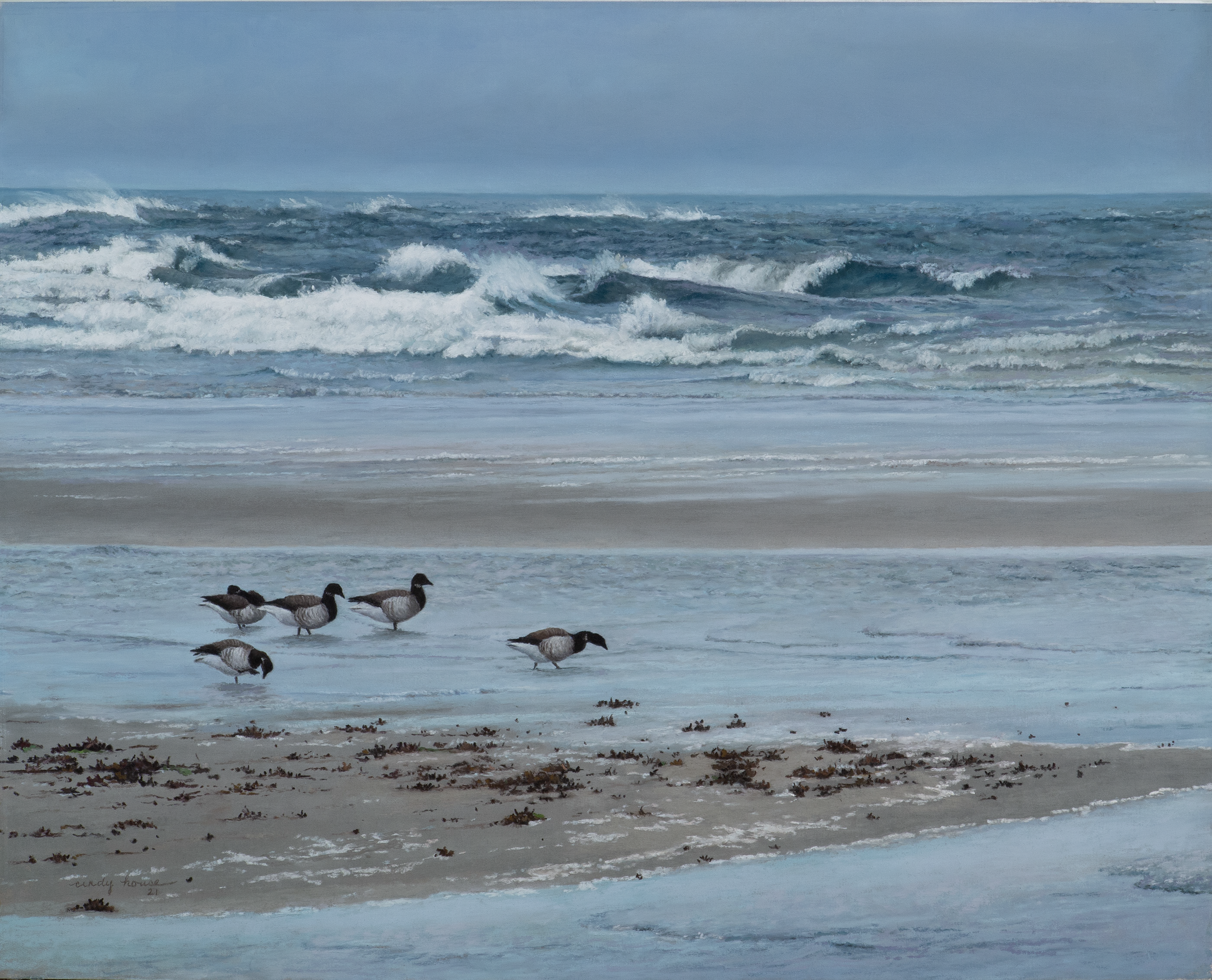 Cindy is committed to truthfully rendering the tangible qualities of the birds and their environs, yet unlike the analytical drawings of specimens of her early career, her paintings are masterworks that stir the soul and transport the viewer to the place depicted: to the stillness of the forest’s edge, where the dense morning fog feels cool on our skin and we hear the flutter of a blackbird taking flight; to the sandy beaches among the din of a perpetual rhythmic tide, watching shorebirds wade among gathered pools; and to marshlands at dusk where tall grasses dance in the wind, so soft and welcoming we almost reach out to touch them.