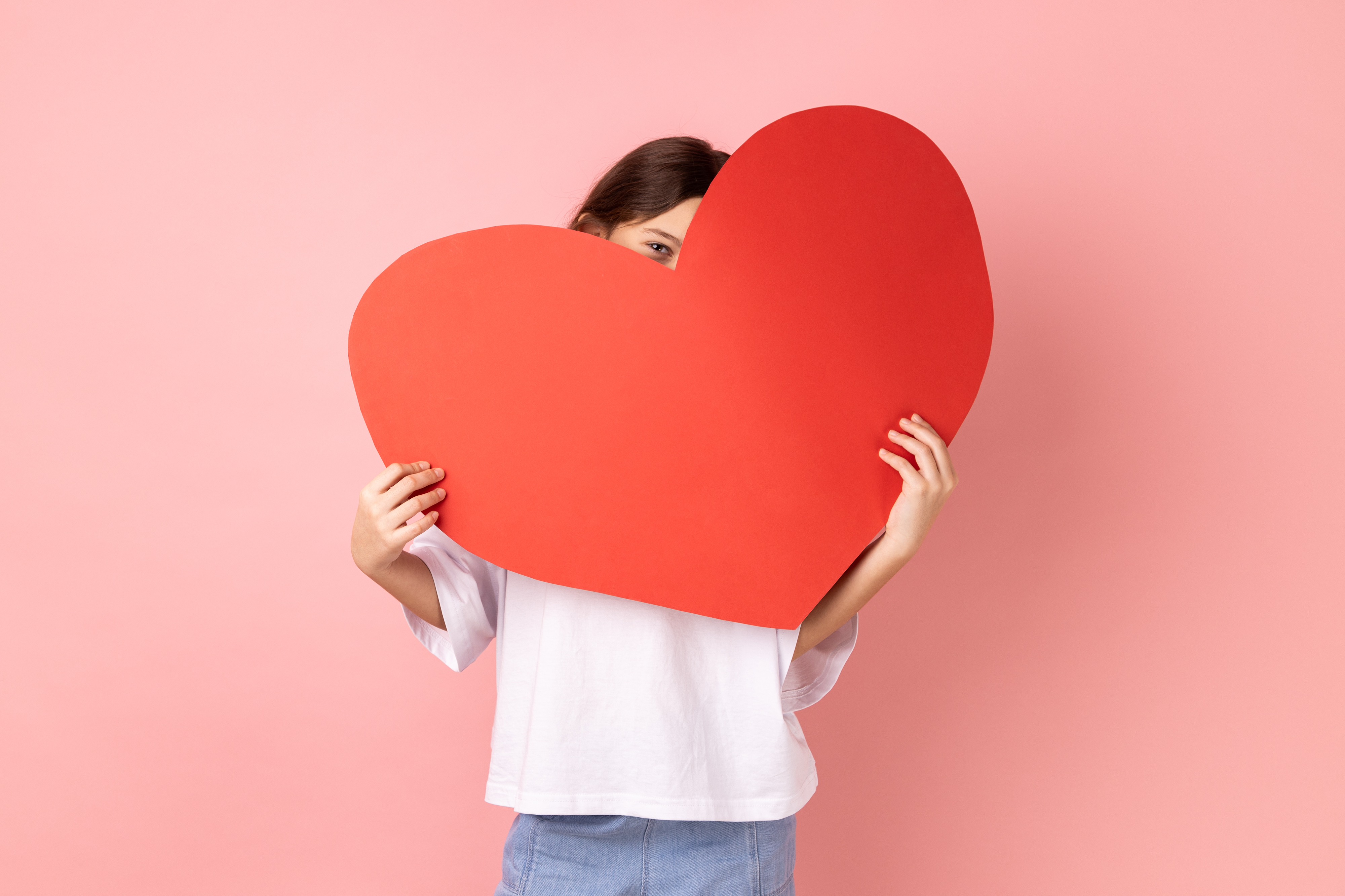 Created with images by Cozine - "Abstract background border of Beautiful fresh sweet pink rose" • Aninka - "heart of yarn made with a paper plate. Kids craft on grey with copy space" • smiltena - "Blossoming cherry tree" • librakv - "Love letter and rose" • anetlanda - "Red love lock padlock on bridge outdoor" • khosrork - "Portrait of little girl in white T-shirt hiding face behind big red heart and looking at camera with curious prying eyes, feeling affection fondness. Indoor studio shot isolated on pink background."