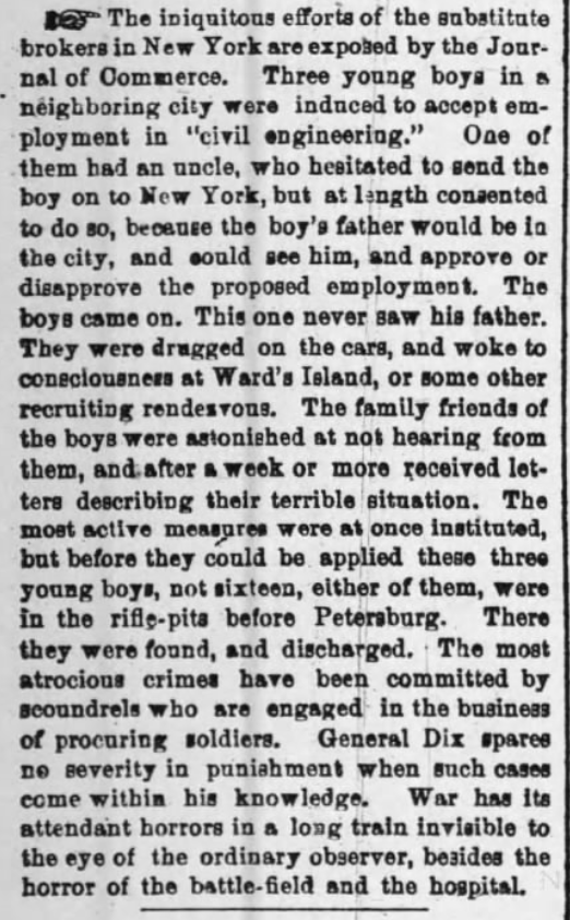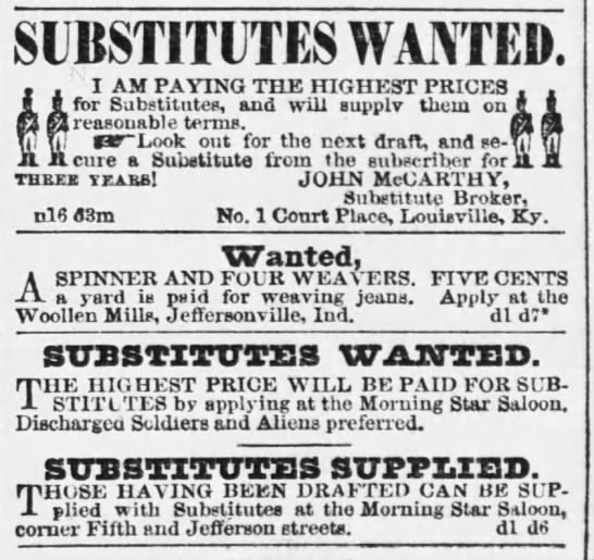 Substitute Advertisement: The Courier Journal, Louisville, Kentucky. December 8, 1864. https://www.newspapers.com/clip/82655054/the-courier-journal/
