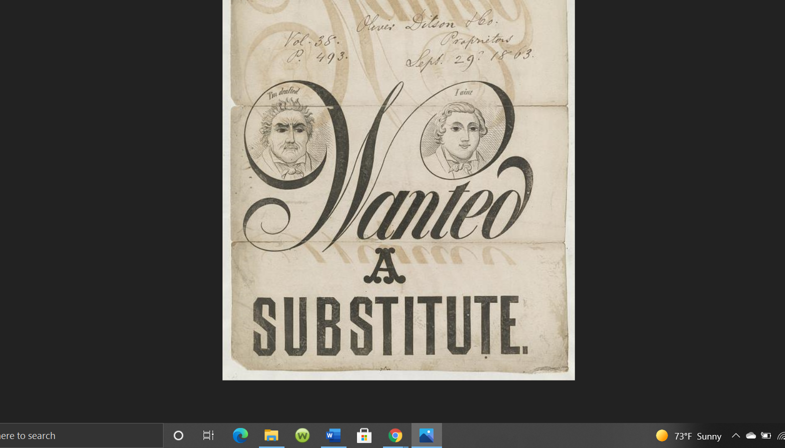 Wanted a Substitute, 1863: https://www.loc.gov/pictures/resource/ppmsca.35356/