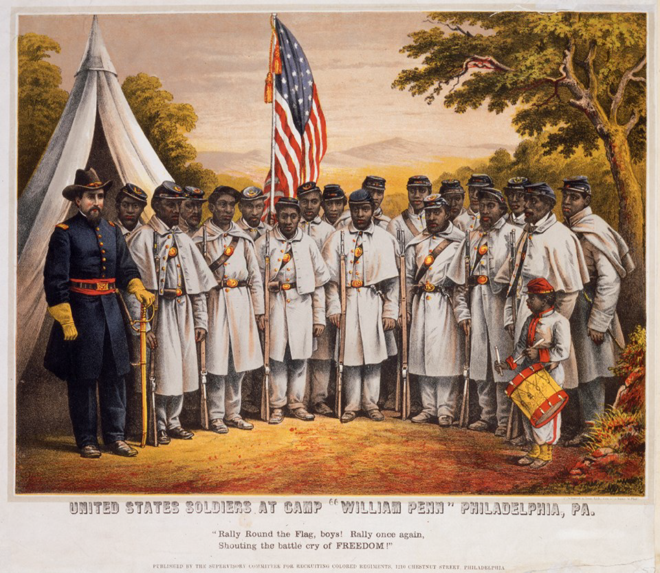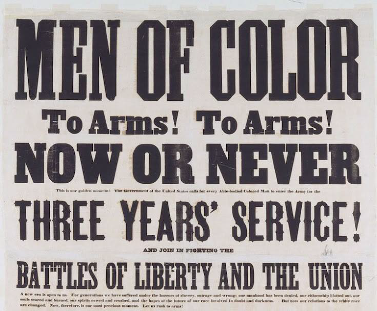 Come and Join Us Brothers, by the Supervisory Committee For Recruiting Colored Regiments, Banner picture. January 1, 1865: https://en.wikipedia.org/wiki/United_States_Colored_Troops#/media/File:Come_and_Join_Us_Brothers,_by_the_Supervisory_Committee_For_Recruiting_Colored_Regiments.jpg
