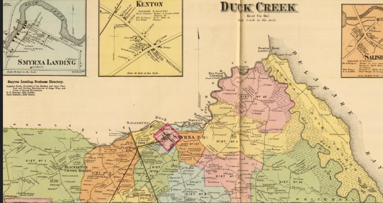 Duck Creek, 1868: https://www.davidrumsey.com/luna/servlet/detail/RUMSEY~8~1~33417~1170903:Duck-Creek-?sort=Pub_List_No_InitialSort%2CPub_Date%2CPub_List_No%2CSeries_No&qvq=q:kent%20county%20delaware;sort:Pub_List_No_InitialSort%2CPub_Date%2CPub_List_No%2CSeries_No;lc:RUMSEY~8~1&mi=0&trs=5